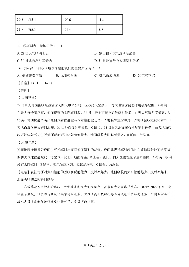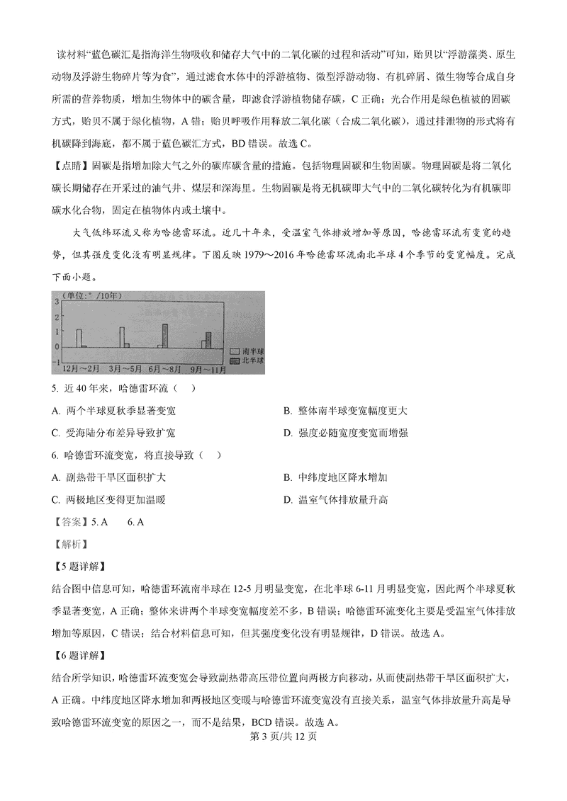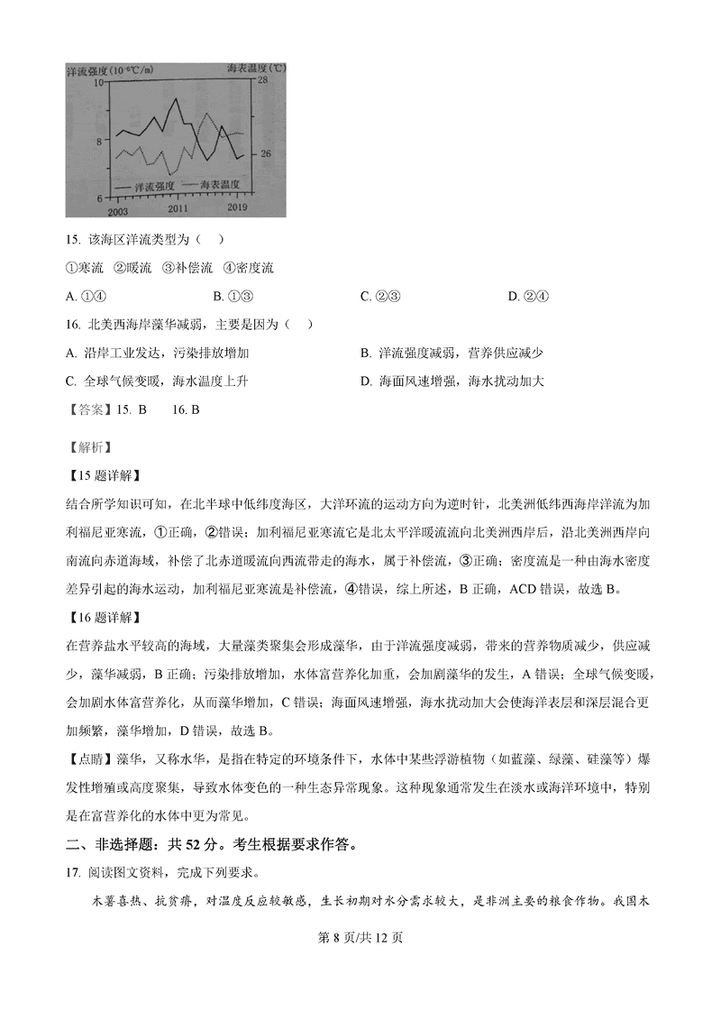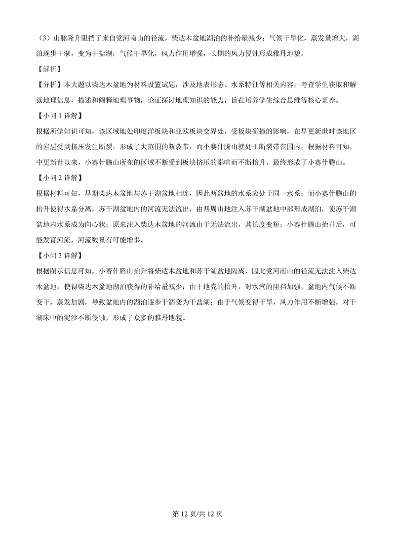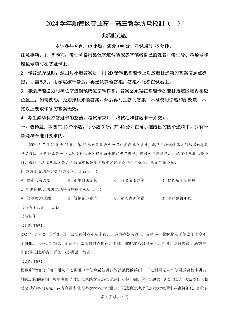佛山顺德区2024学年高三教学质检(一)地理试题及答案