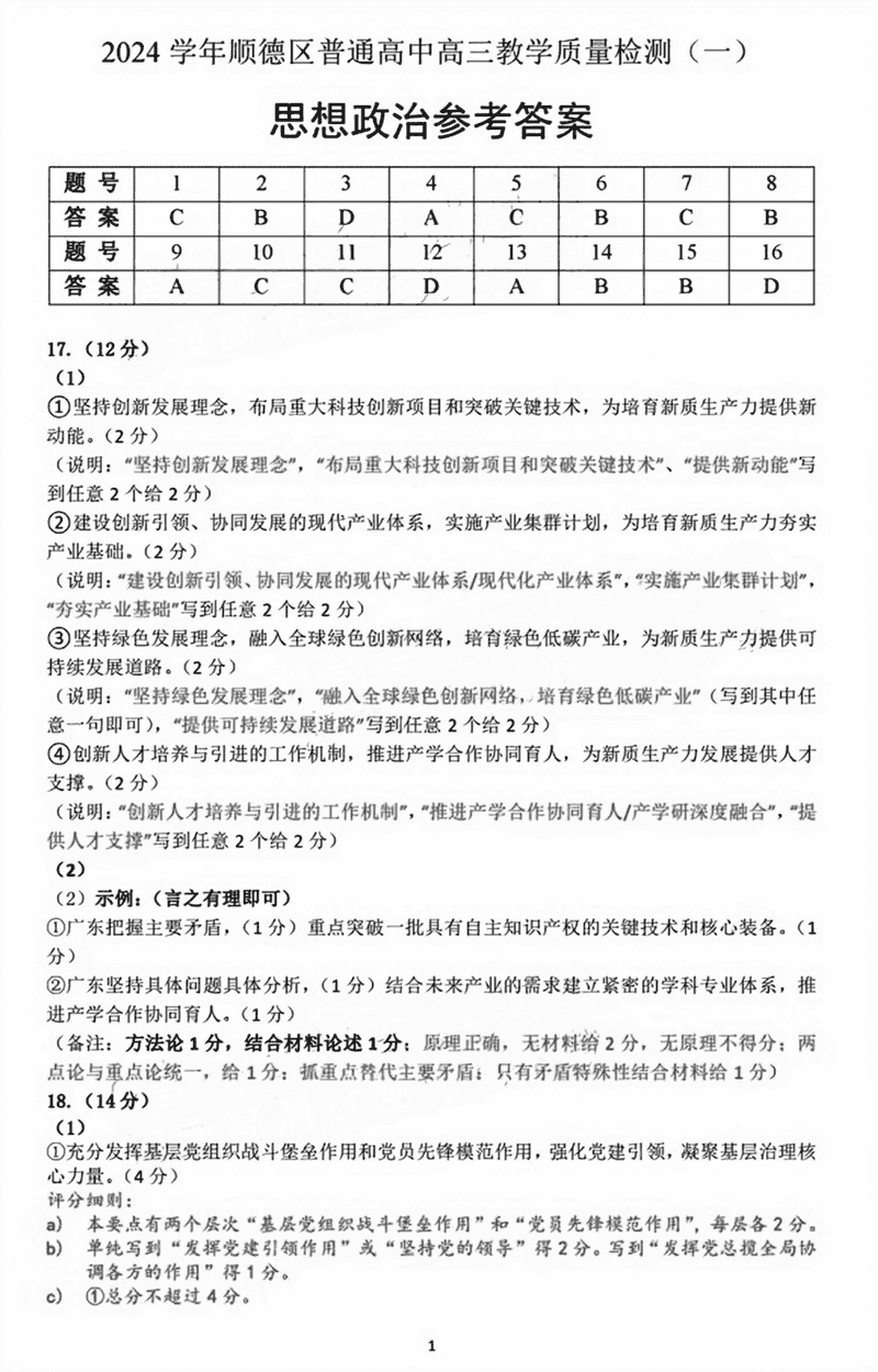 佛山顺德区2024学年高三教学质检(一)地理考试已于近日开考,为方便考生考后及时查看考试情况,查漏补缺、弥补不足,本文整理了试题答案解析相关信息!