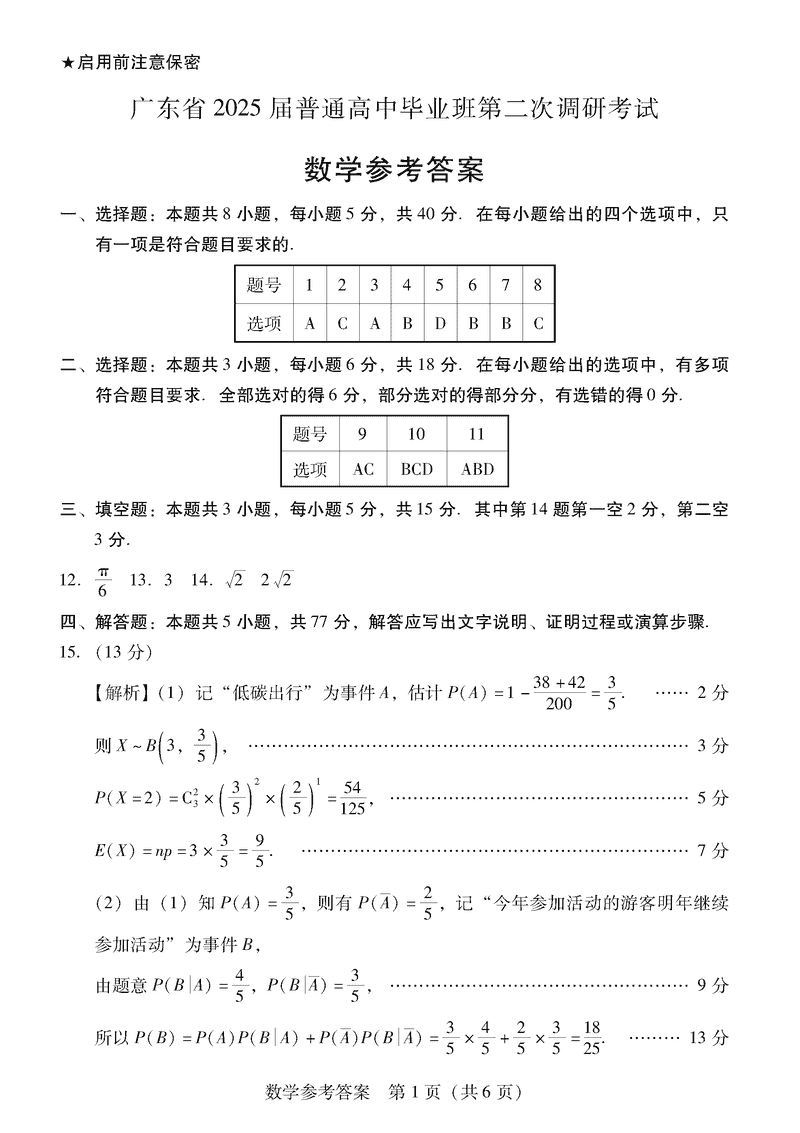 2025届广东高三第二次调研数学试题及答案 时间:2024-11-22 01:36 广东 数学试题 2025届广东高三第二次调研数学考试已于近日开考,为方便考生考后及时查看考试情况,查漏补缺、弥补不足,本文整理了试题答案解析相关信息! 汇总:2025届广东高三第二次调研考试试题及答案汇总 数学试题及答案解析