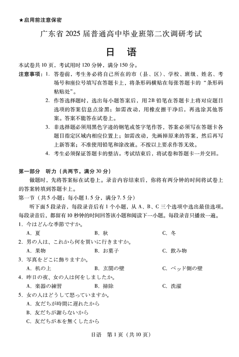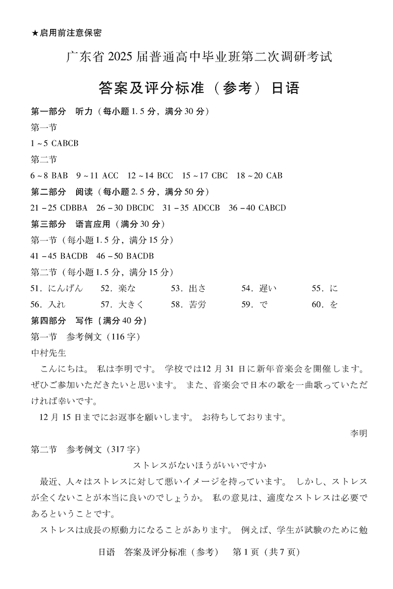 2025届广东高三第二次调研日语试题及答案 时间:2024-11-23 16:43 广东 英语试题 2025届广东高三第二次调研日语考试已于近日开考,为方便考生考后及时查看考试情况,查漏补缺、弥补不足,本文整理了试题答案解析相关信息! 汇总:2025届广东高三第二次调研考试试题及答案汇总 日语试题及答案解析