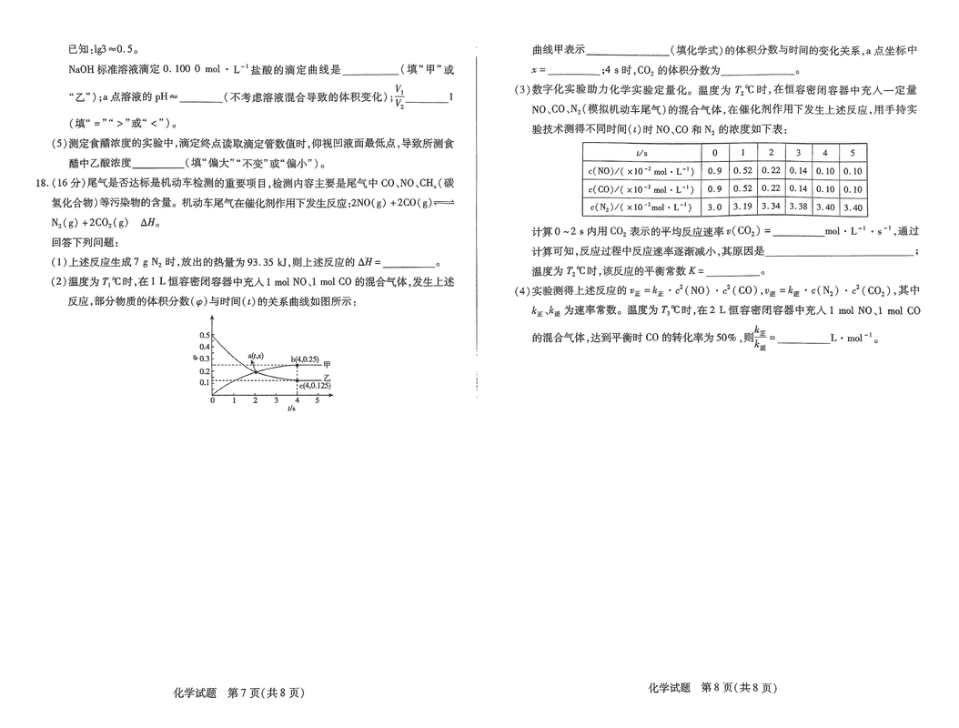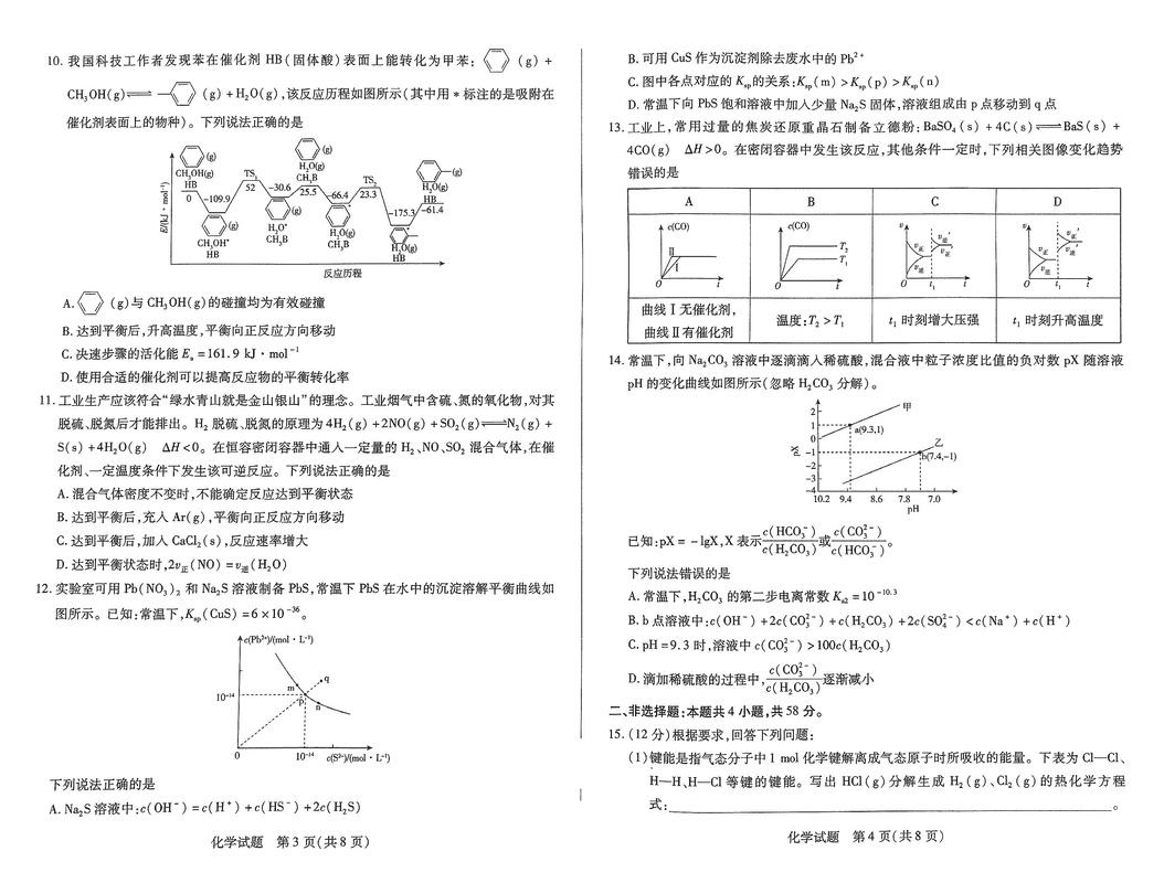 河南天一大联考2024年11月高二上学期期中化学试题及答案