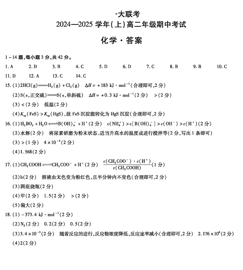 河南天一大联考2024年11月高二上学期期中化学考试已于近日开考,为方便考生考后及时查看考试情况,查漏补缺、弥补不足,本文整理了试题答案解析相关信息!
