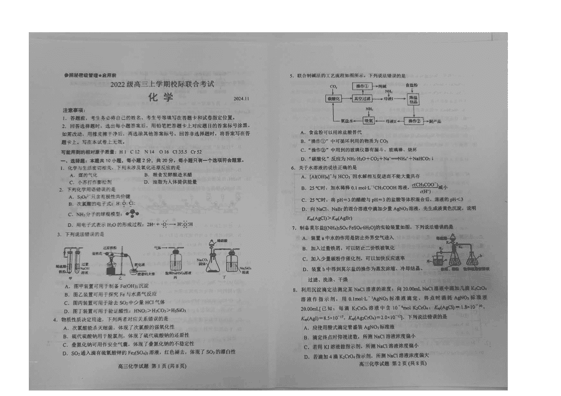 山东日照2025届高三上学期11月期中校际联考化学考试已于近日开考,为方便考生考后及时查看考试情况,查漏补缺、弥补不足,本文整理了试题答案解析相关信息!