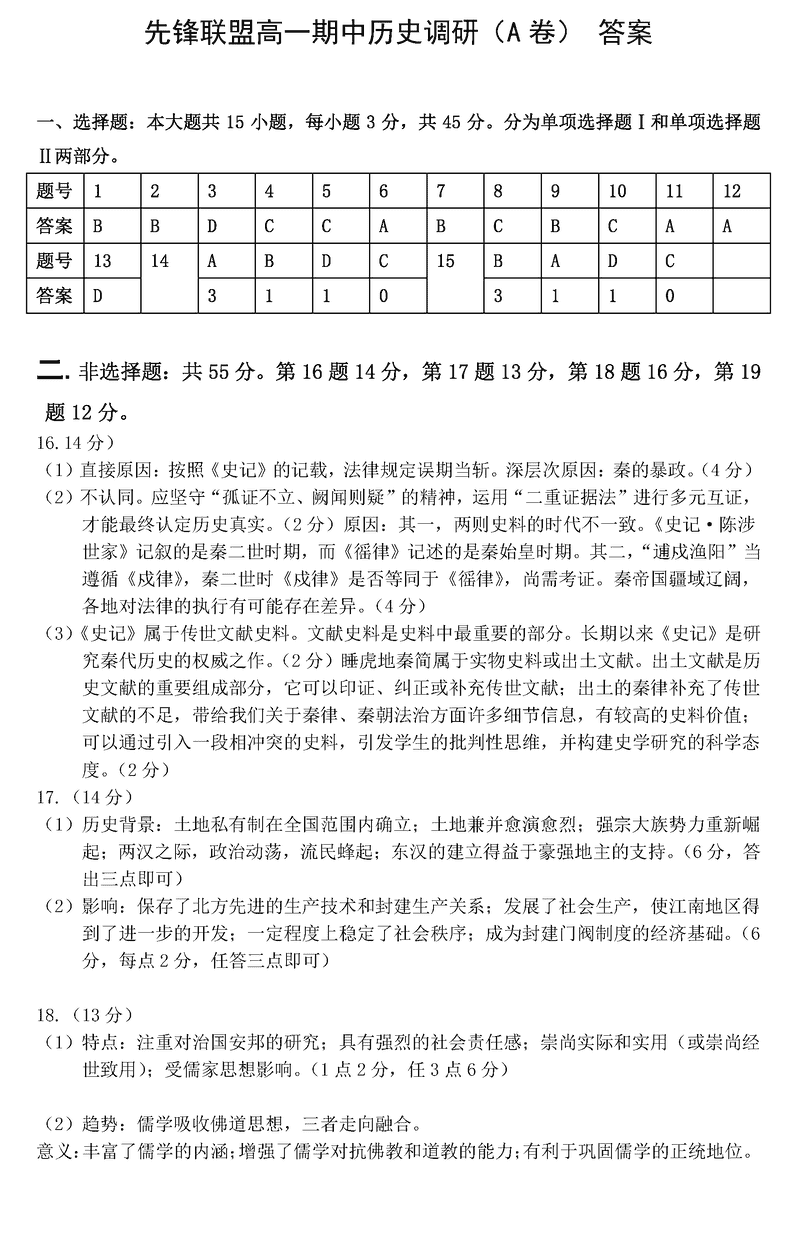 海南先锋联盟2024-2025学年高一上学期11月期中历史试题及答案 时间:2024-11-26 21:36 海南 高中历史 海南省先锋联盟2024-2025学年高一上学期11月期中历史考试已于近日开考,为方便考生考后及时查看考试情况,查漏补缺、弥补不足,本文整理了试题答案解析相关信息! 历史试题及答案解析