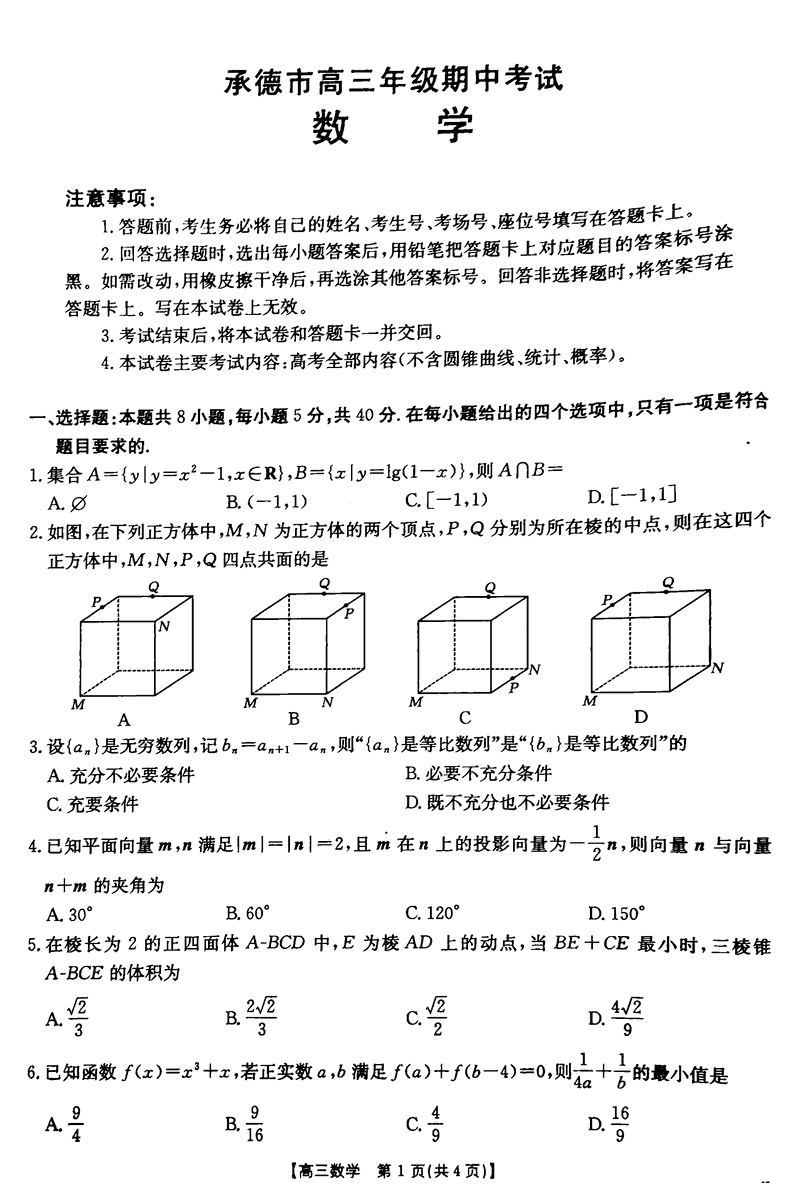 河北承德2024-2025学年高三上学期期中数学试题及答案