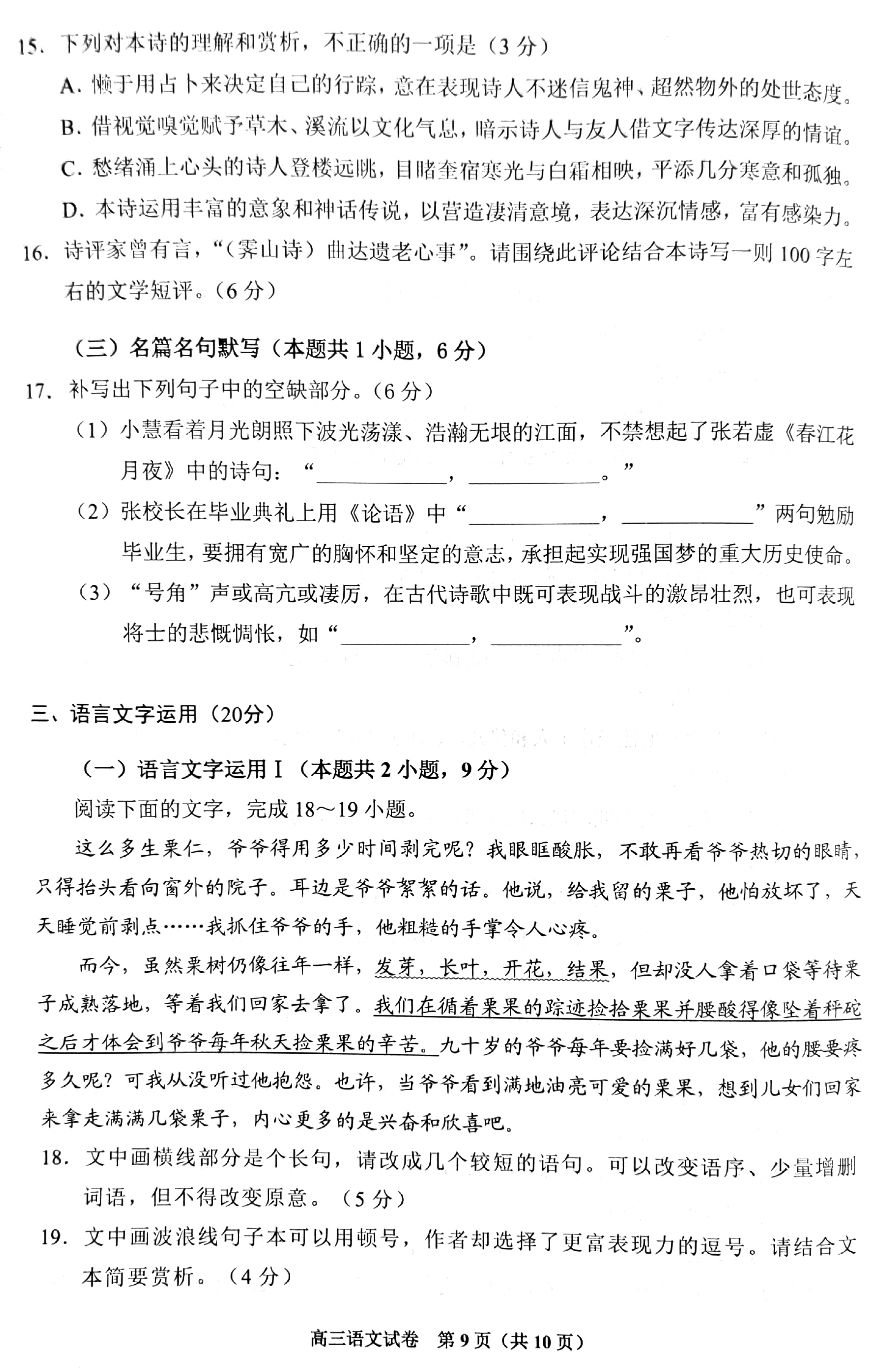 贵阳市2025届高三上学期11月质量监测语文试题及答案