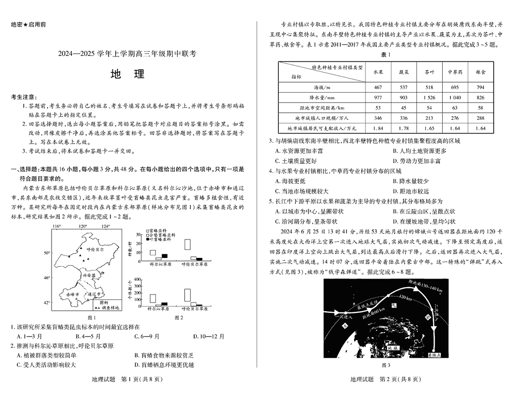 安徽卓越县中联盟2025届高三11月期中地理试题及答案