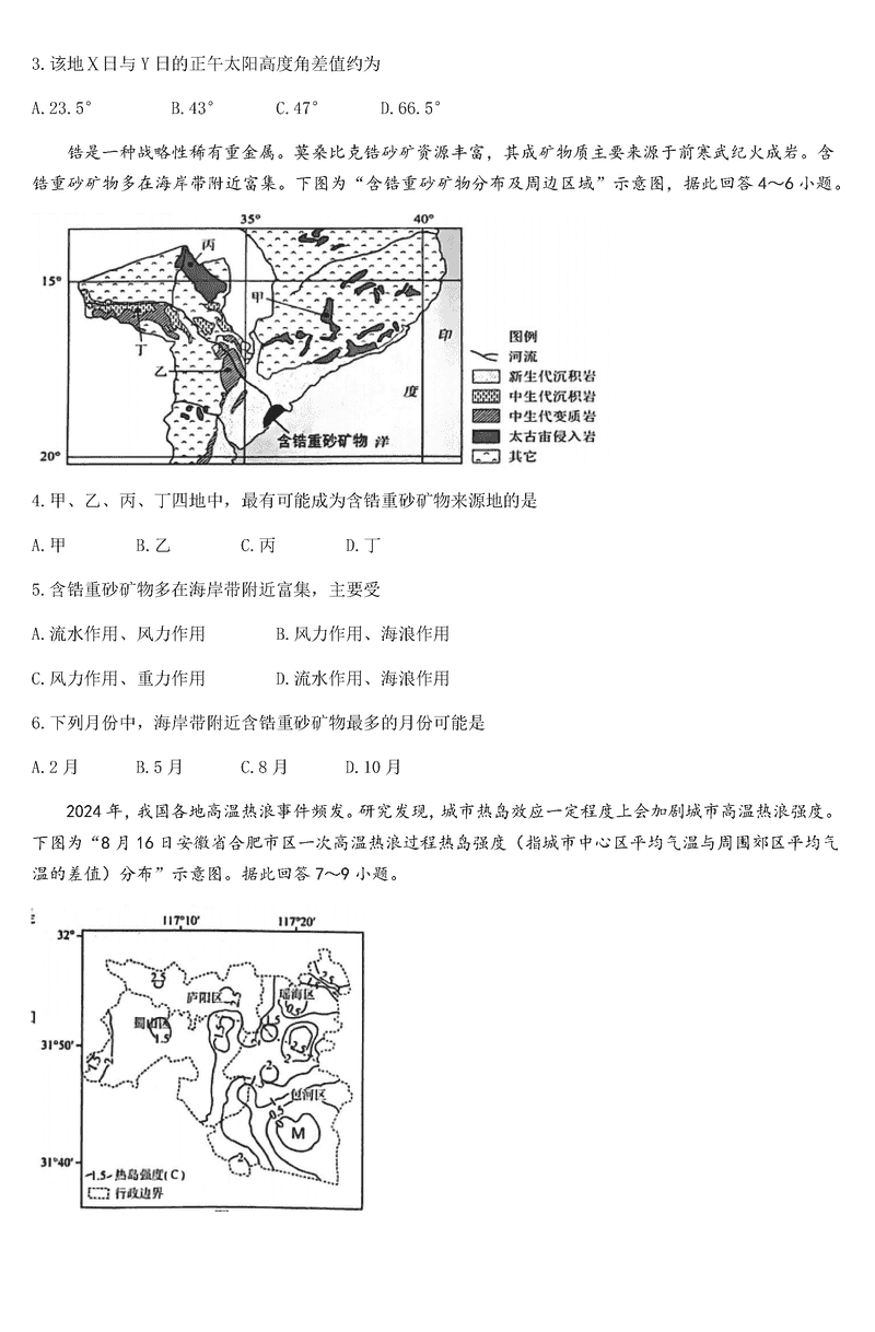 南通通州区、如东县2025届高三上学期期中联考地理试题及答案