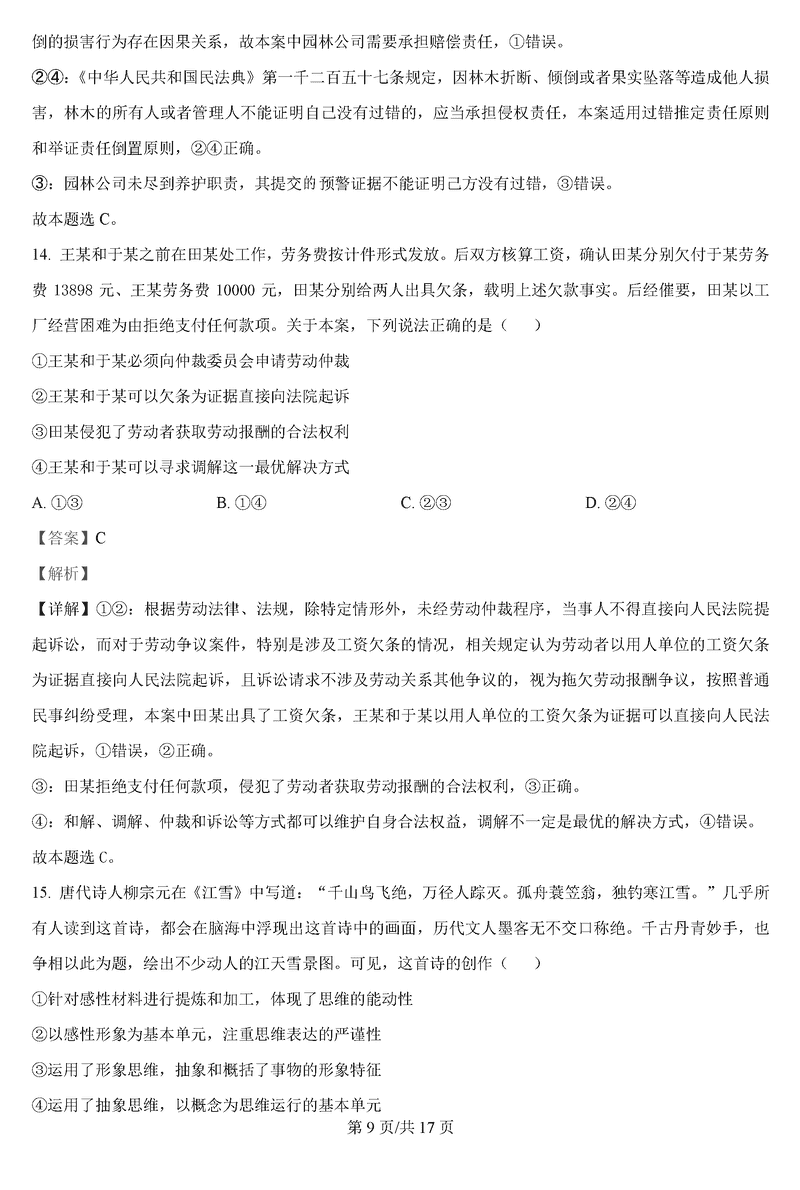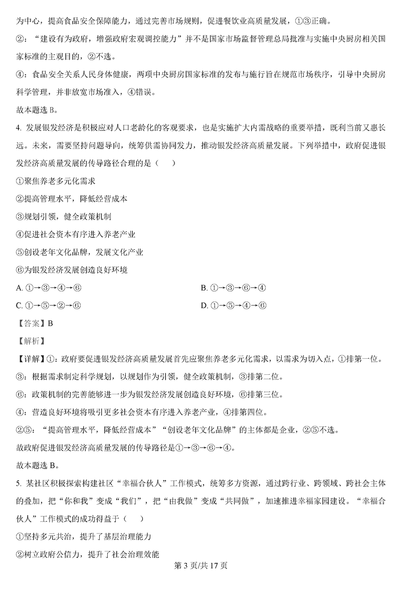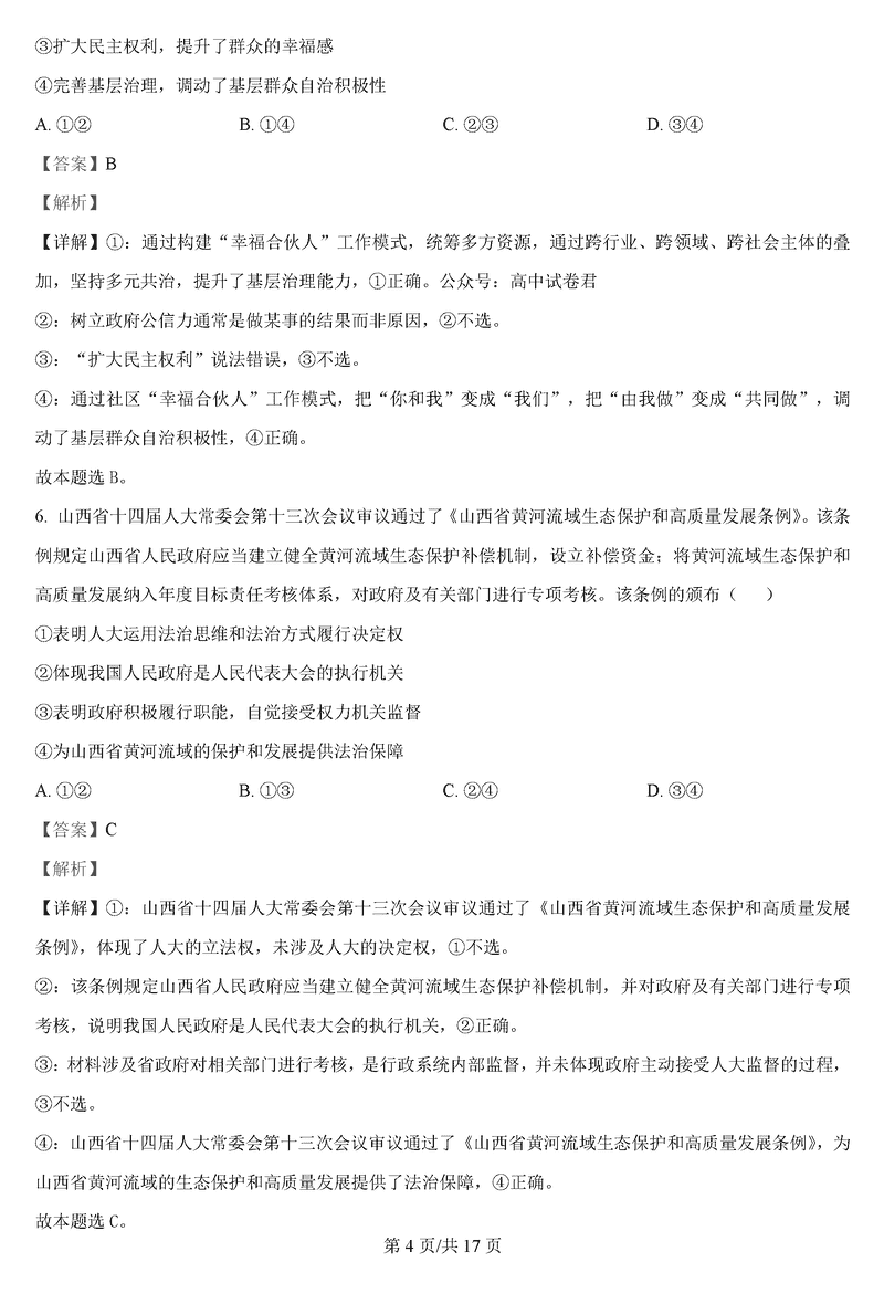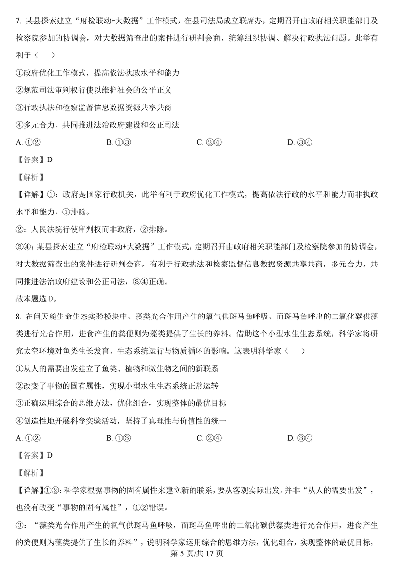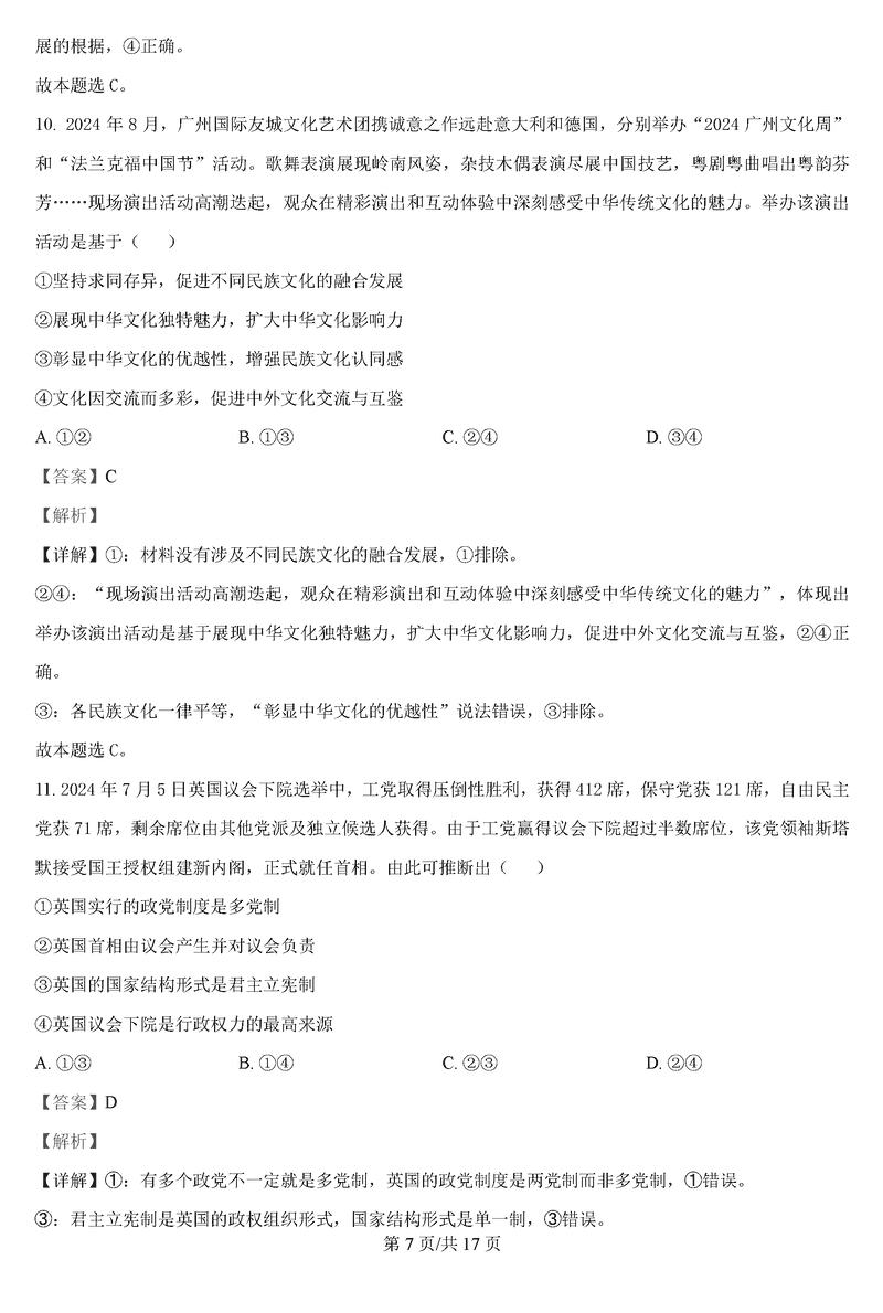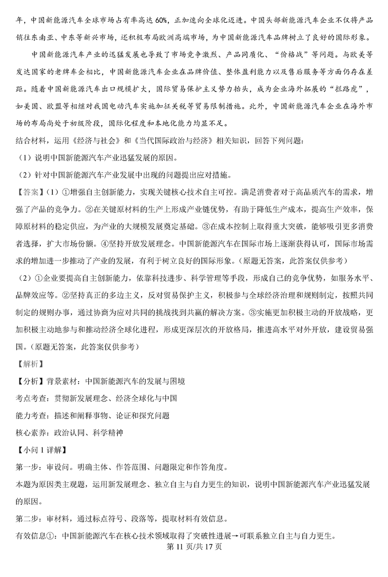 政治试题及答案解析