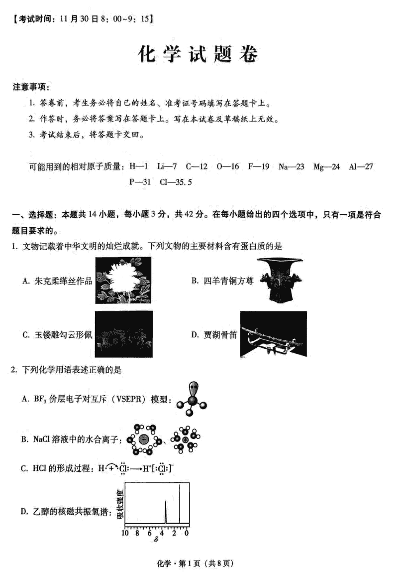 重庆一中2025届高三上学期11月期中化学考试已于近日开考,为方便考生考后及时查看考试情况,查漏补缺、弥补不足,本文整理了试题答案解析相关信息!