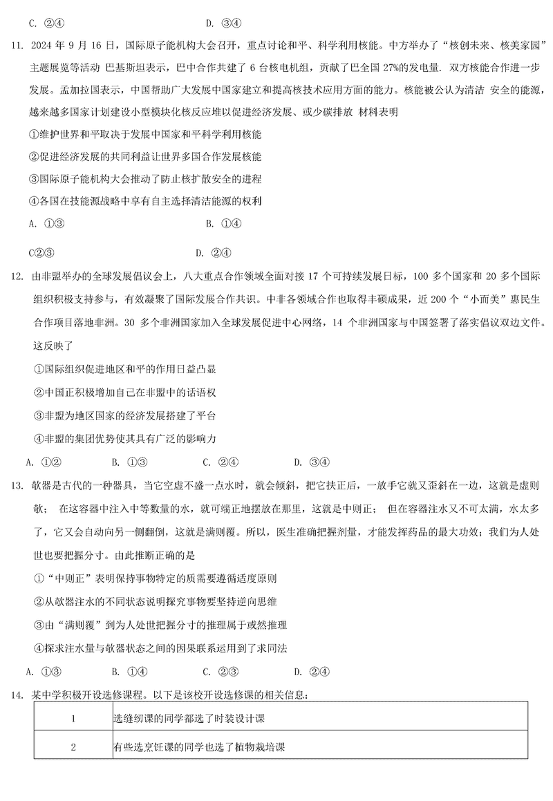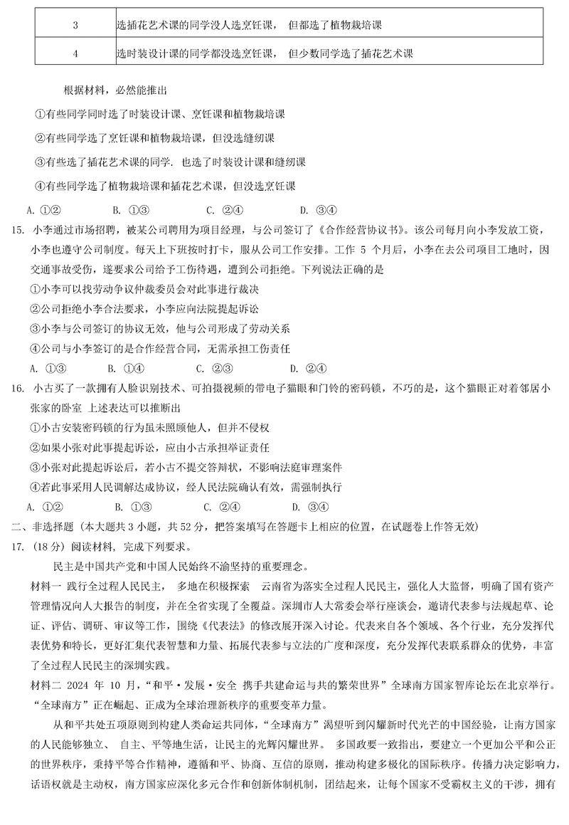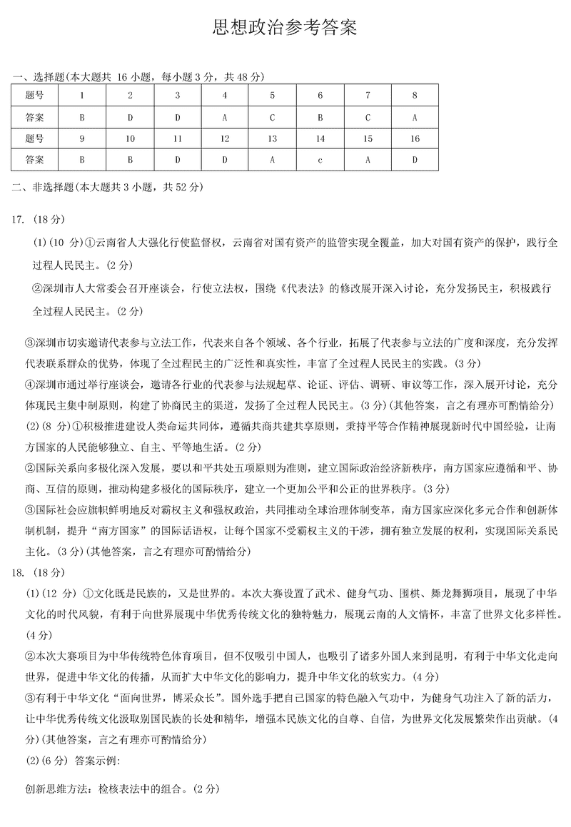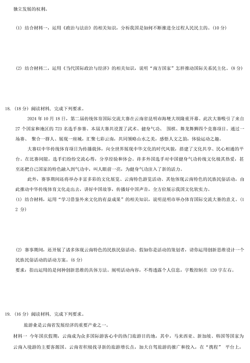 云师大附中2024-2025学年高三高考适应性月考(六)政治试题及答案