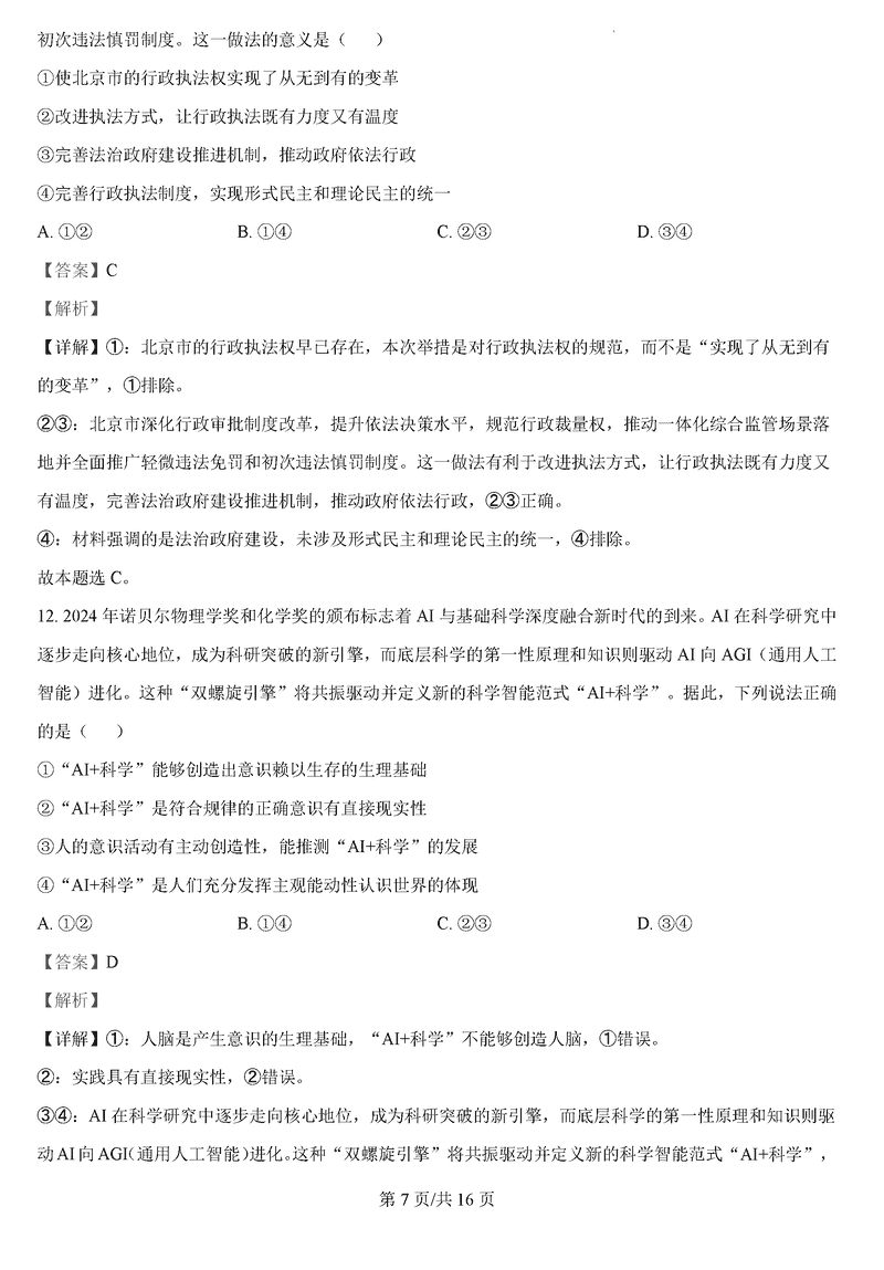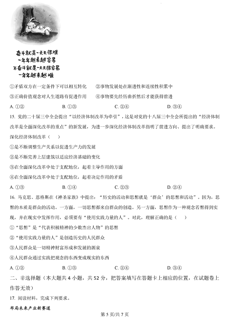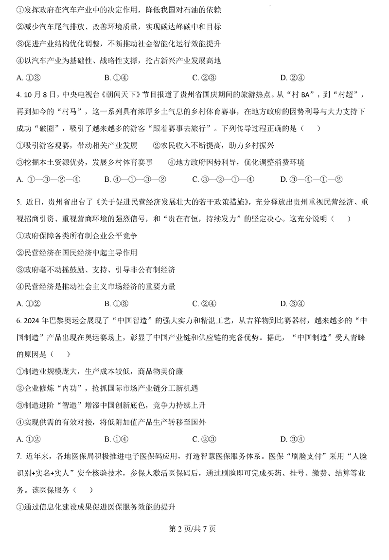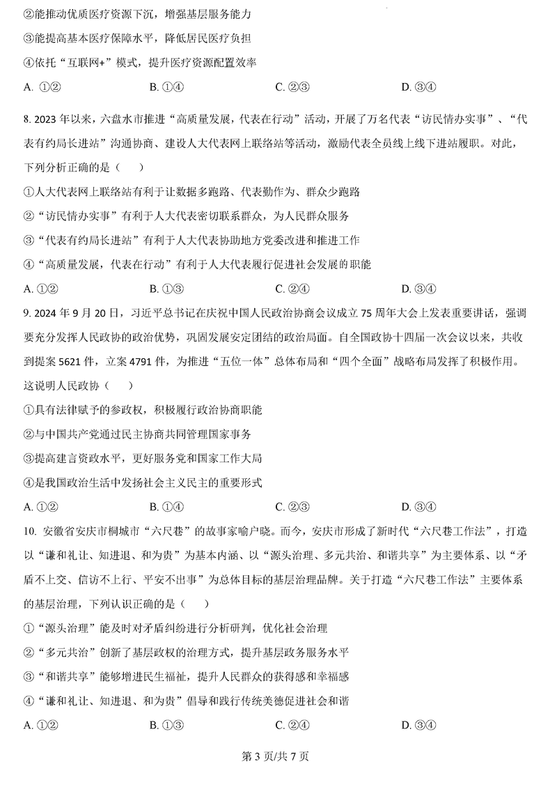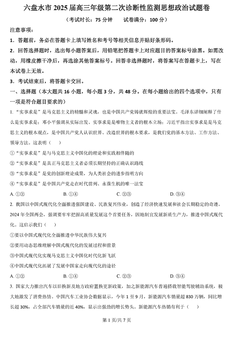 六盘水2025届高三上学期第二次诊断政治试题及答案