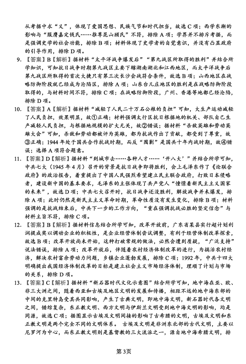 历史试题及答案解析