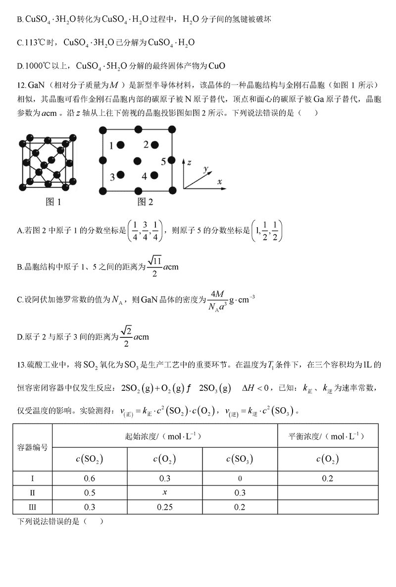 陕西宝鸡中学2025届高三12月月考三化学试题及答案