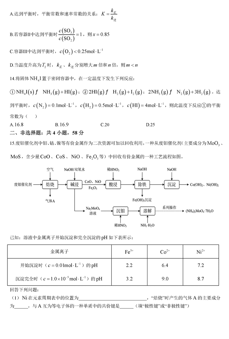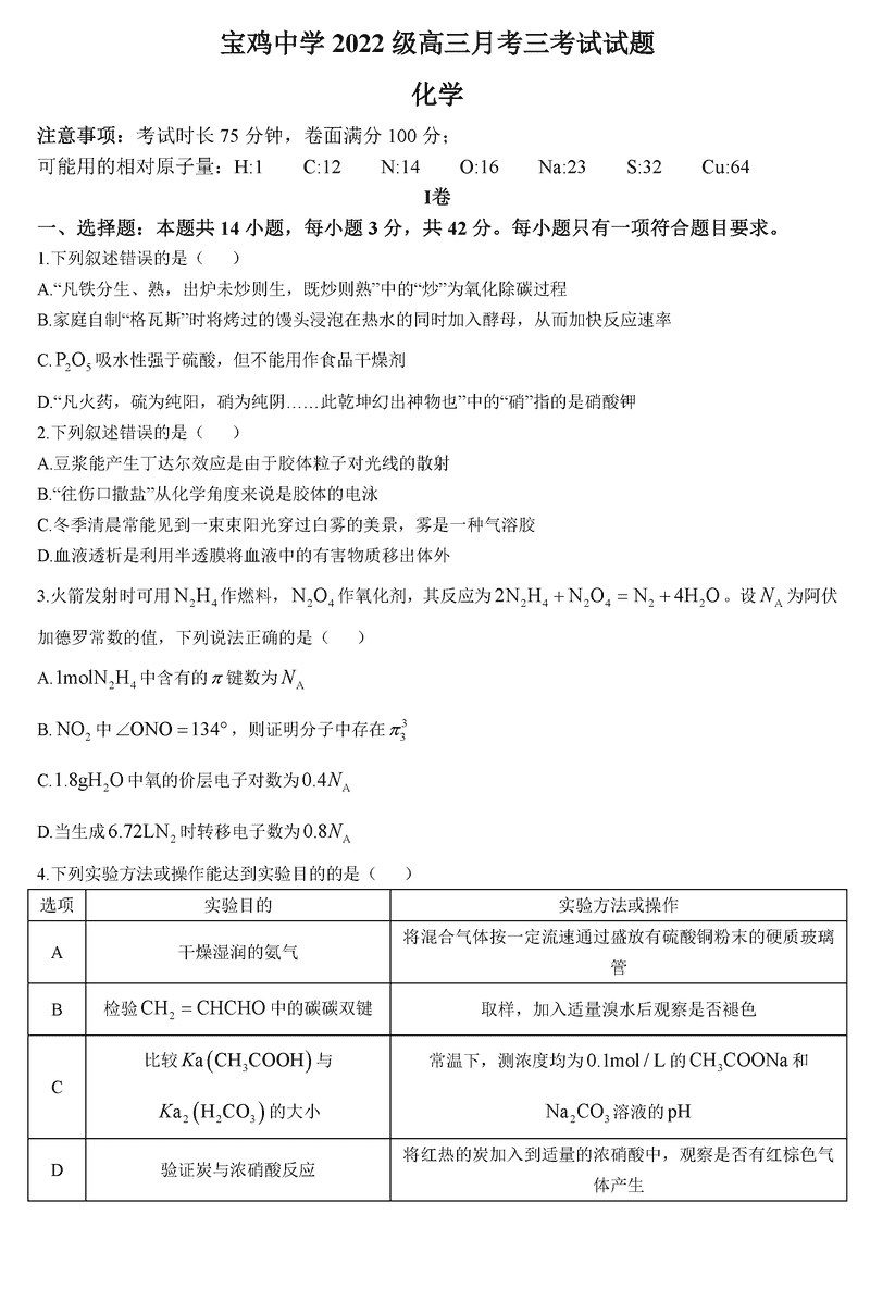陕西宝鸡中学2025届高三12月月考三化学考试已于近日开考,为方便考生考后及时查看考试情况,查漏补缺、弥补不足,本文整理了试题答案解析相关信息!
