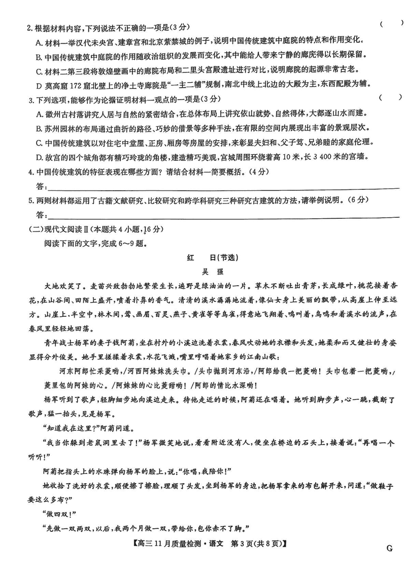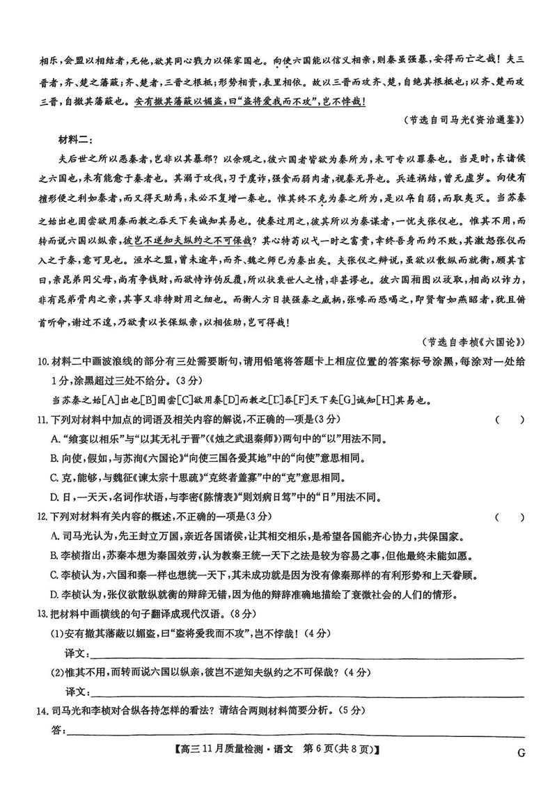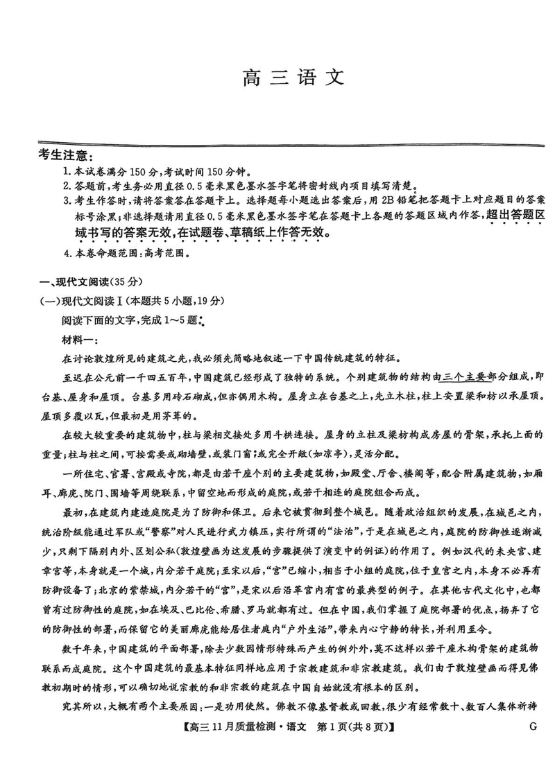 九师联盟2025届高三12月联考语文试题及答案 时间:2024-12-06 22:27 语文试题 九师联盟2025届高三12月联考语文考试已于近日开考,为方便考生考后及时查看考试情况,查漏补缺、弥补不足,本文整理了试题答案解析相关信息! 汇总:九师联盟2025届高三12月联考试题及答案汇总 语文试题及答案解析