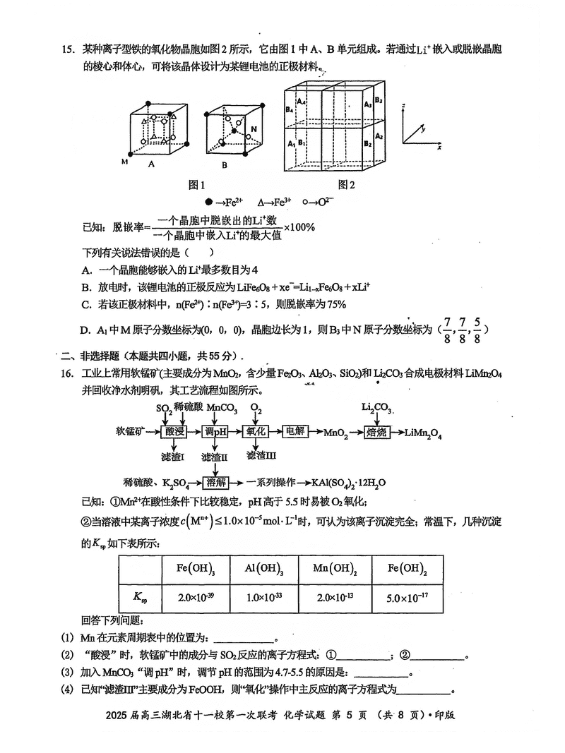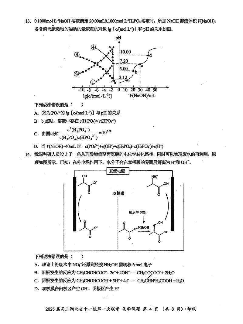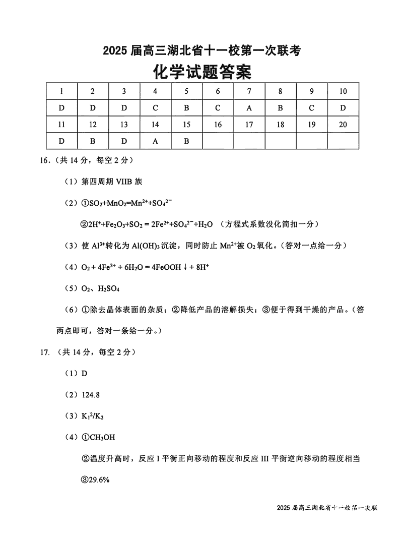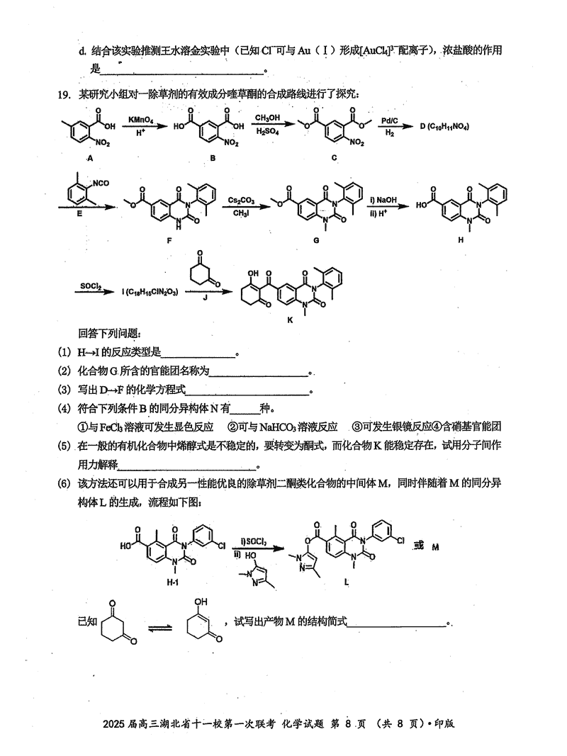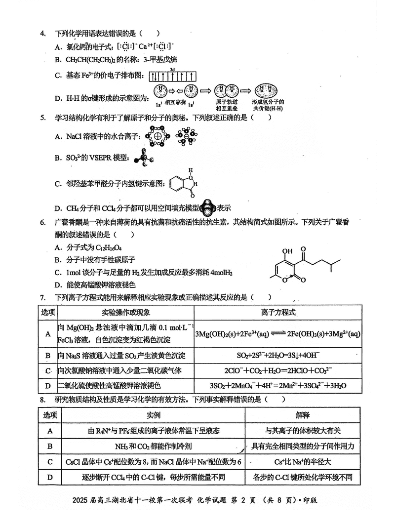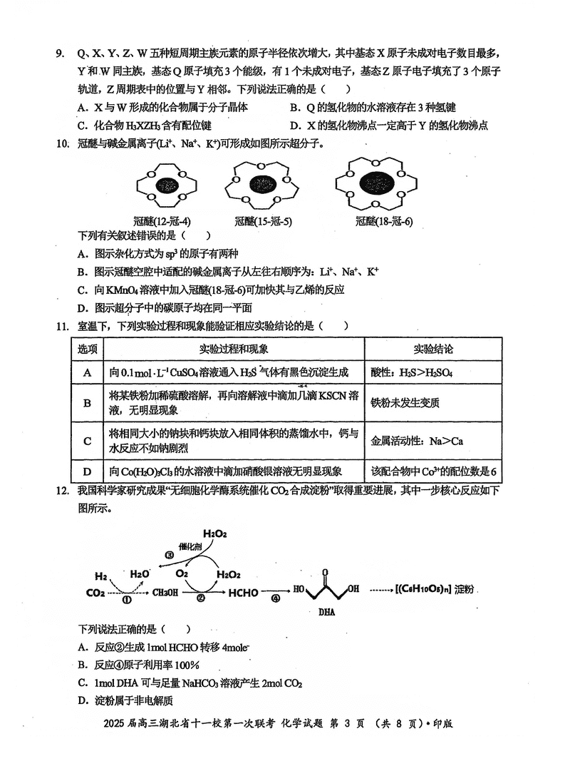 湖北十一校2025届高三12月第一次联考化学试题及答案