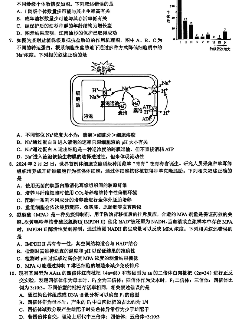 浙江县域教研联盟2025届高三上学期摸底考生物试题及答案
