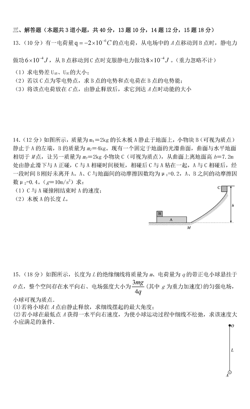 黑龙江省实验中学2025届高三上第三次月考物理试题及答案