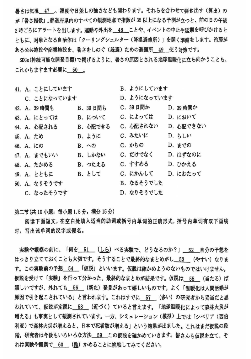 诸暨一模2025届高三上学期12月诊断日语试题及答案
