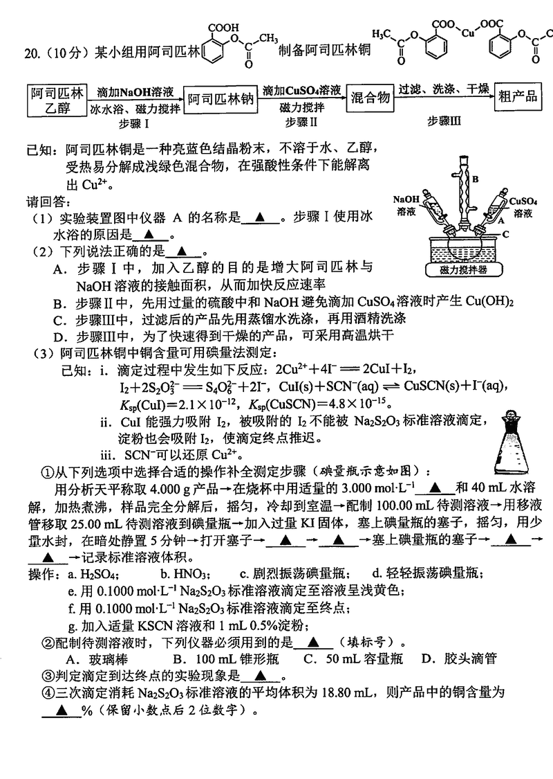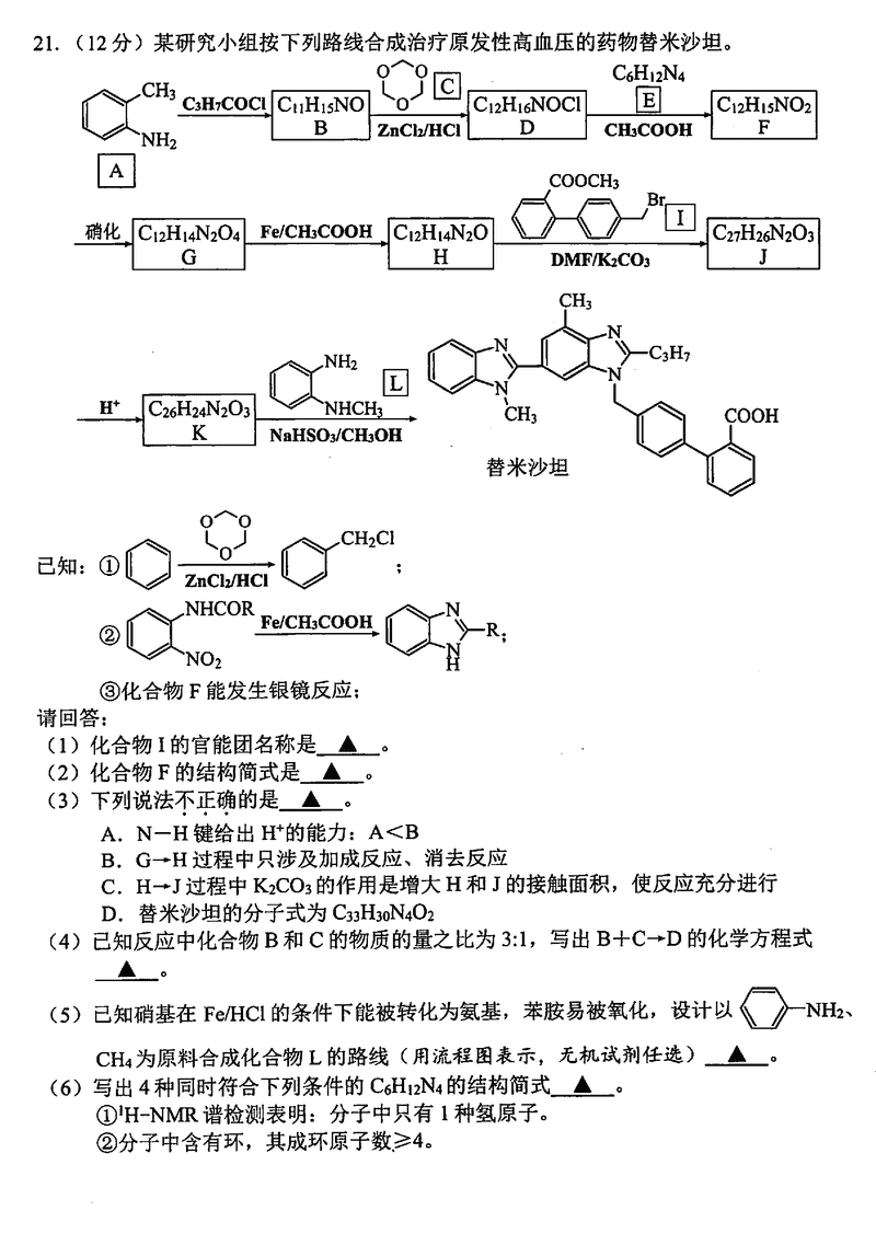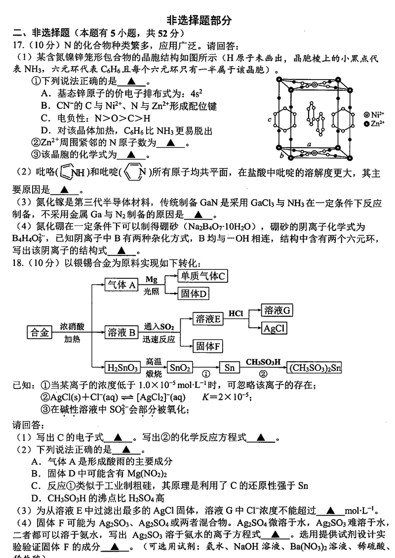 浙江嘉兴一模2024年高三12月教学测试化学考试已于近日开考,为方便考生考后及时查看考试情况,查漏补缺、弥补不足,本文整理了试题答案解析相关信息!