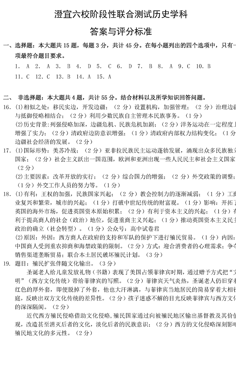 无锡澄宜六校2025届高三上学期12月联考历史考试已于近日开考,为方便考生考后及时查看考试情况,查漏补缺、弥补不足,本文整理了试题答案解析相关信息!