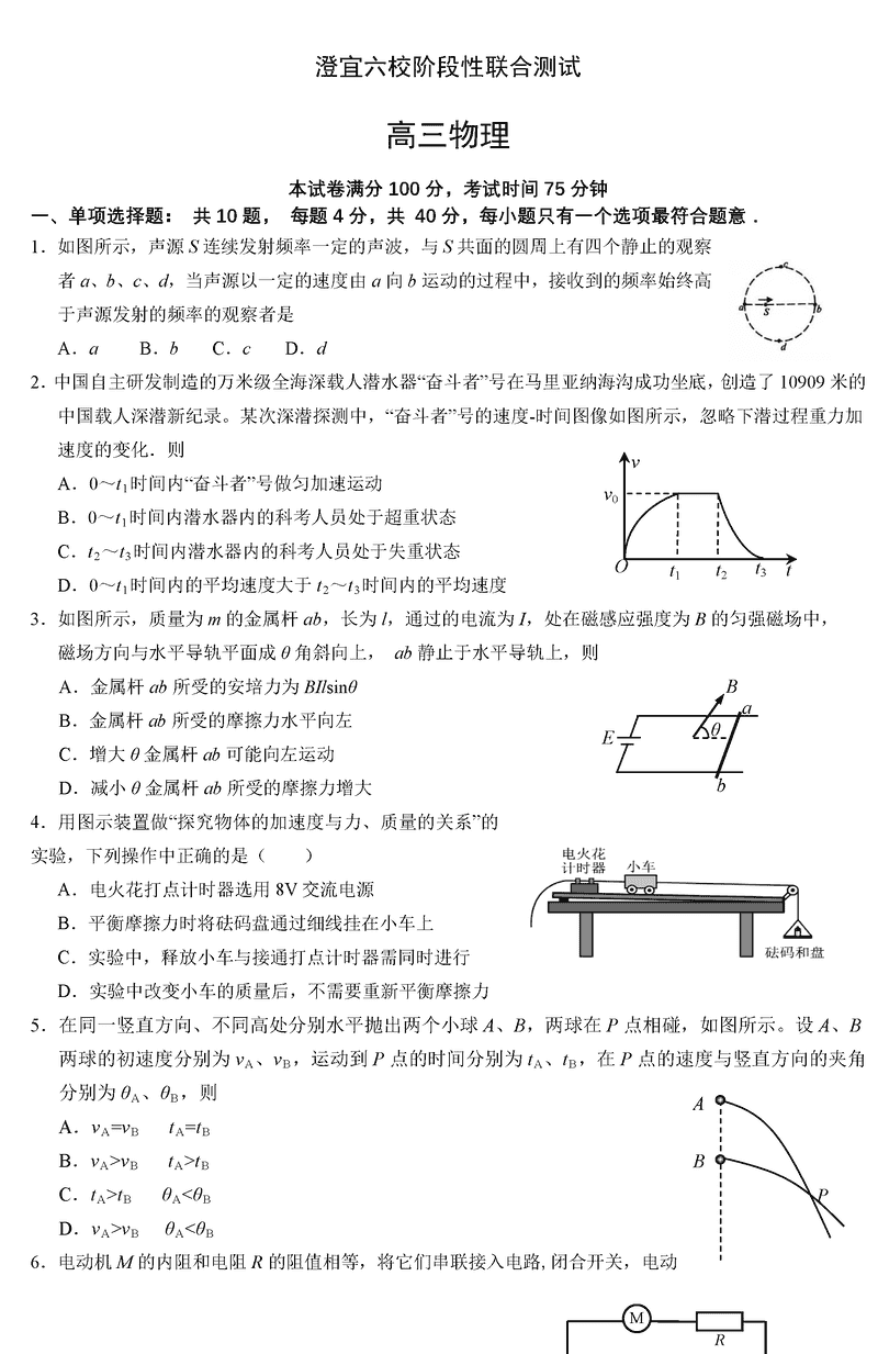 无锡澄宜六校2025届高三上学期12月联考物理考试已于近日开考,为方便考生考后及时查看考试情况,查漏补缺、弥补不足,本文整理了试题答案解析相关信息!