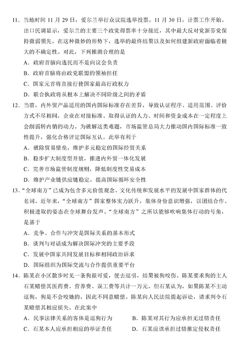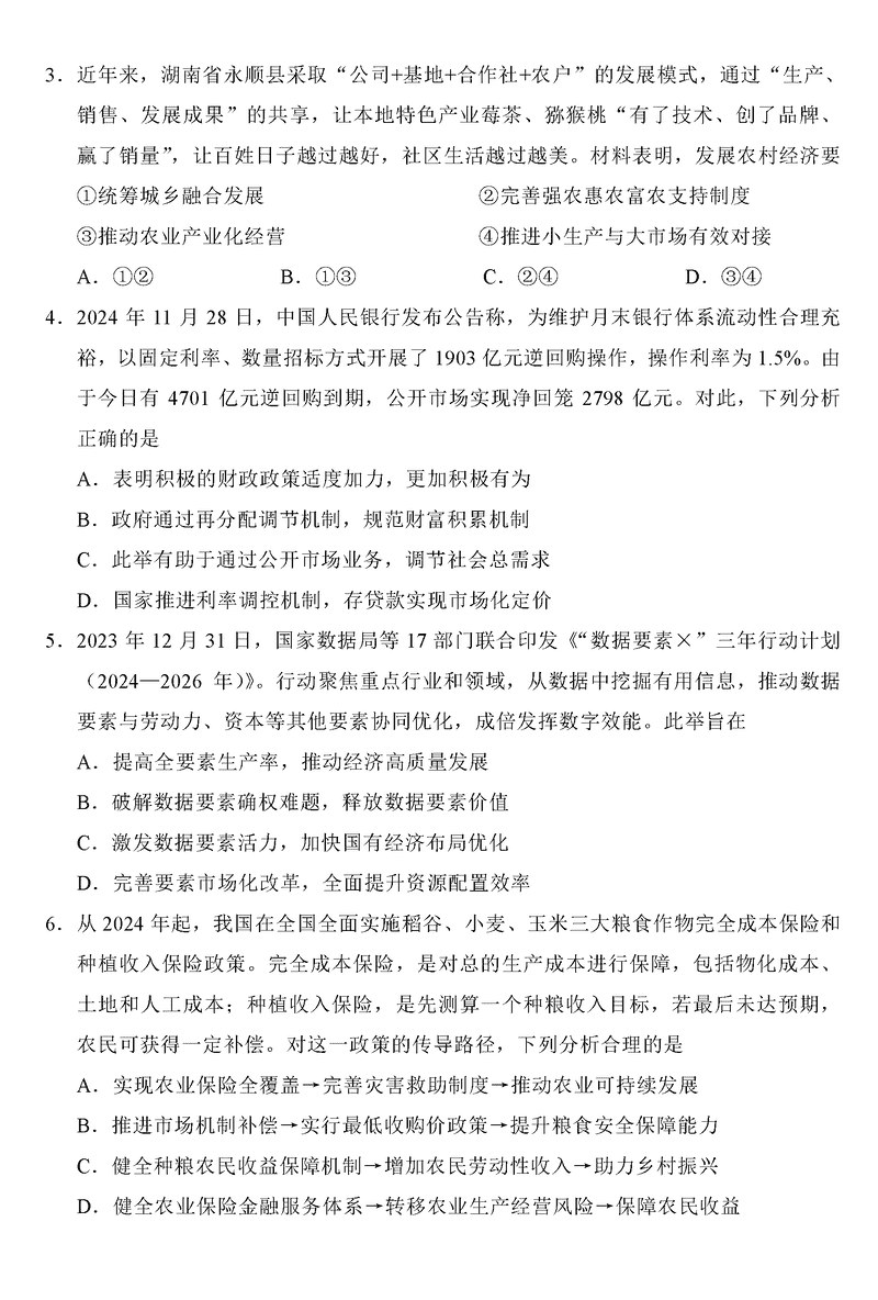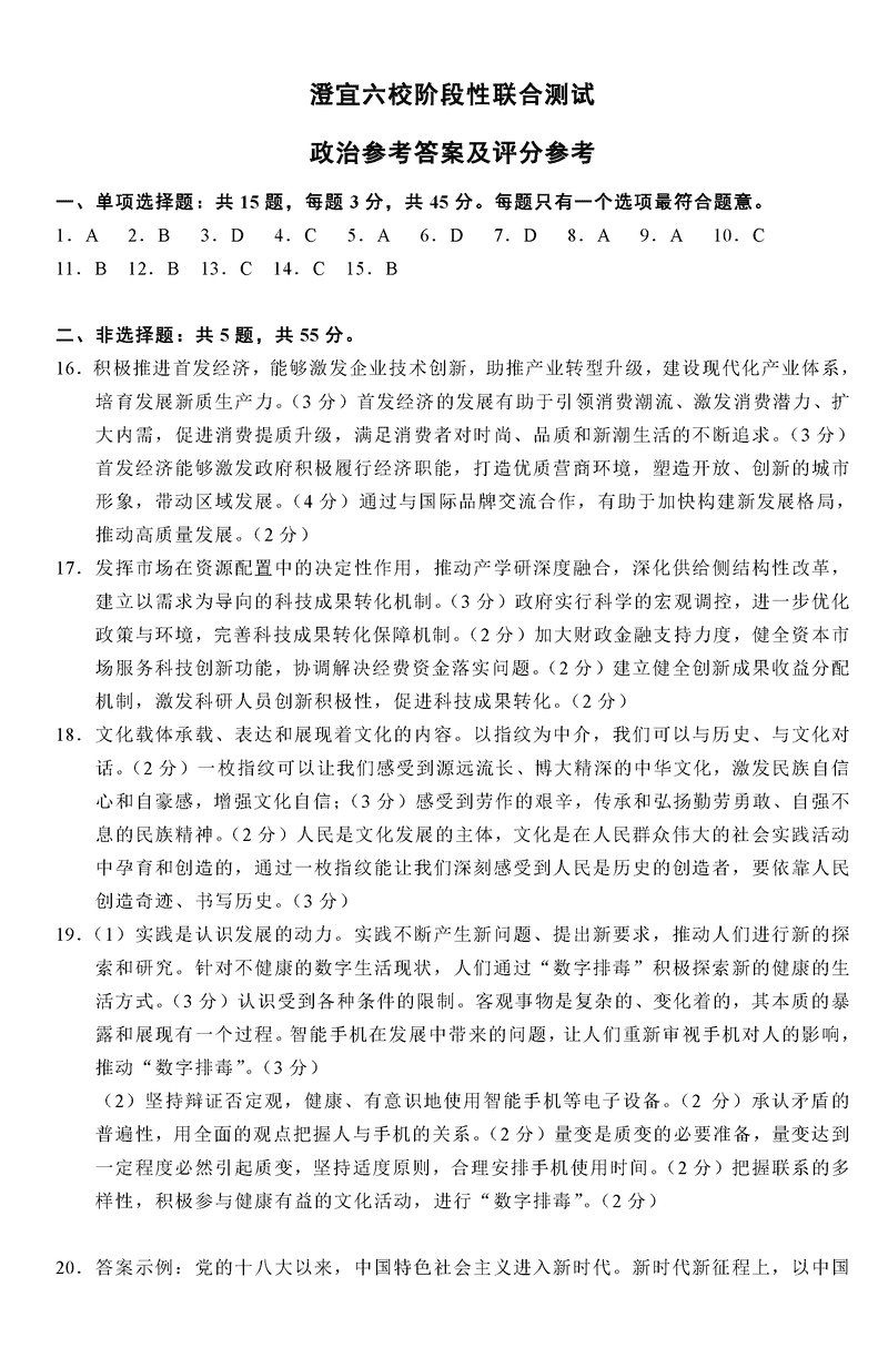 无锡澄宜六校2025届高三上学期12月联考政治试题及答案