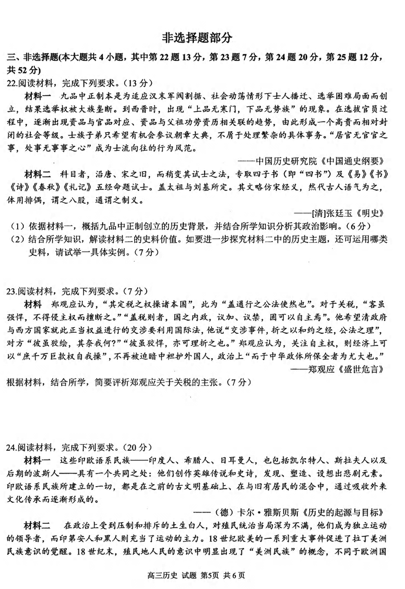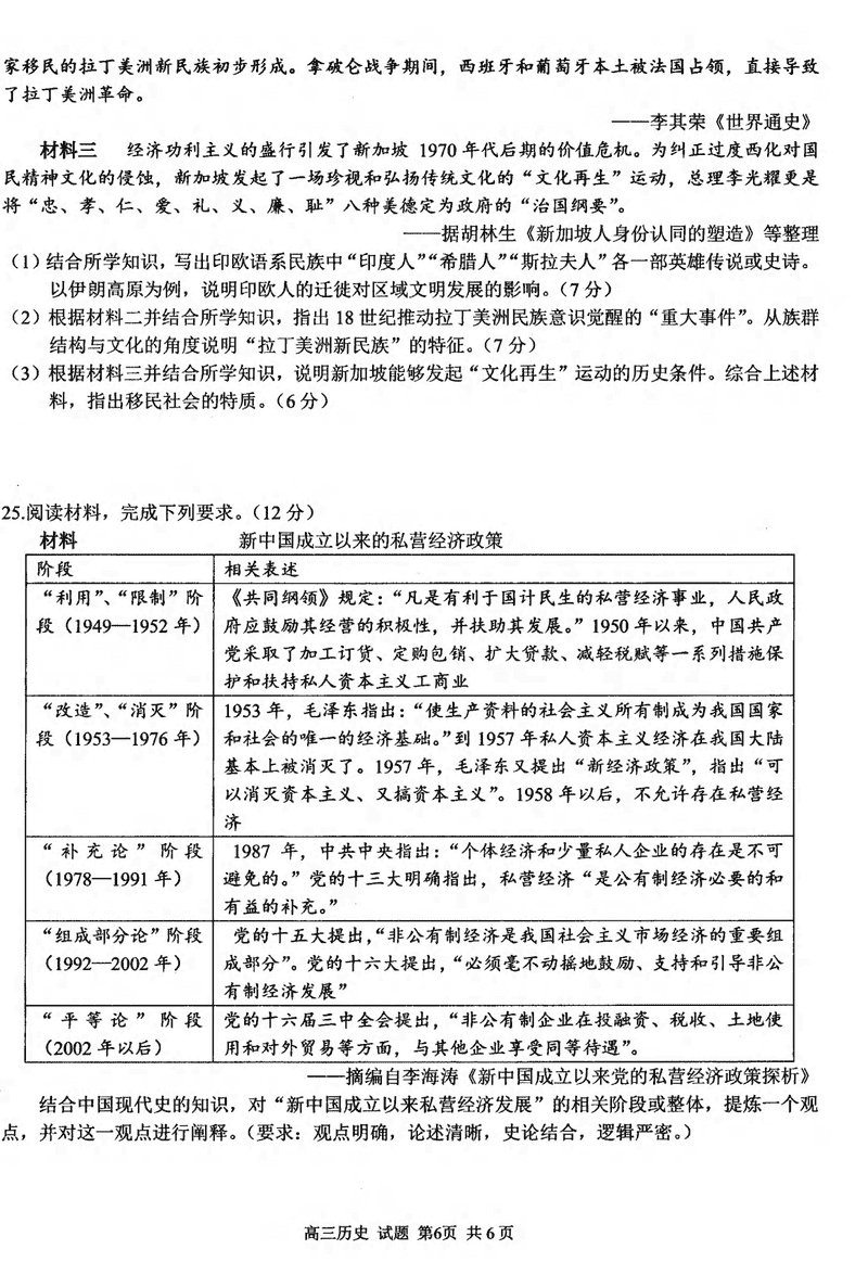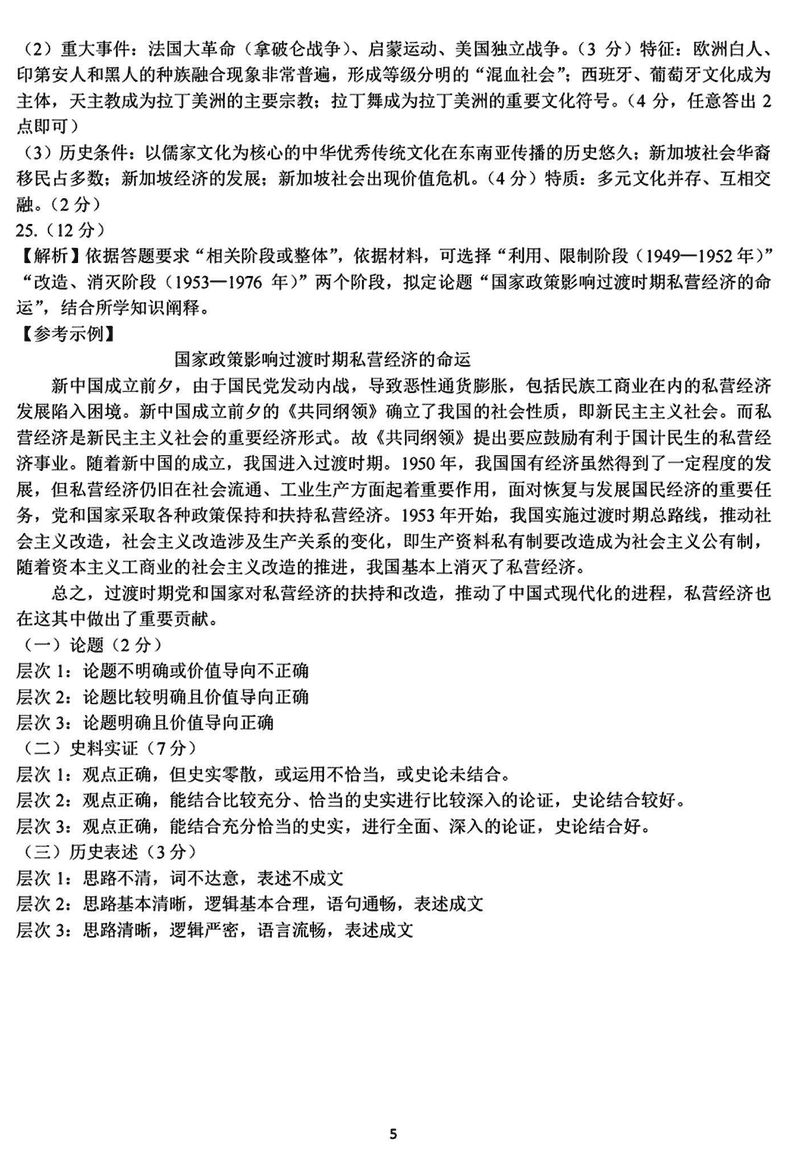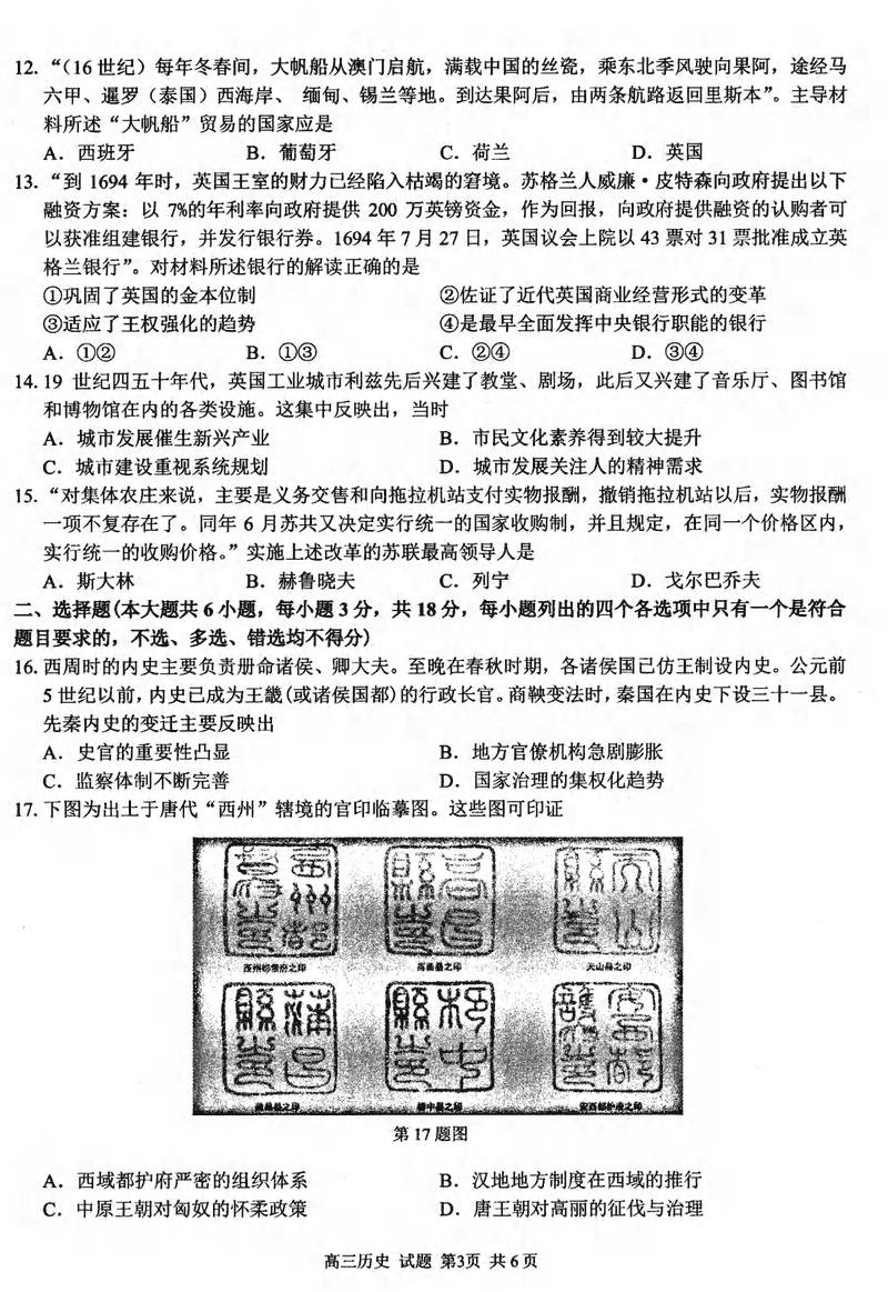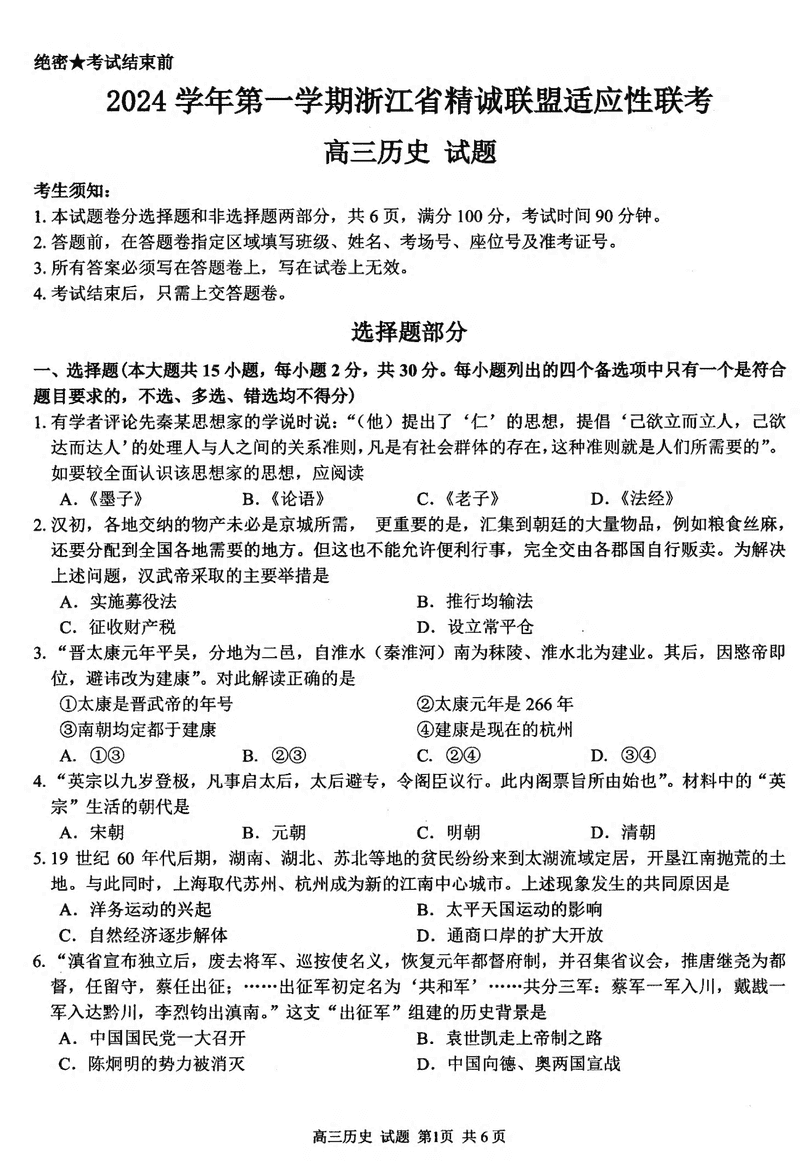 浙江精诚联盟2024学年12月高三上联考历史试题及答案