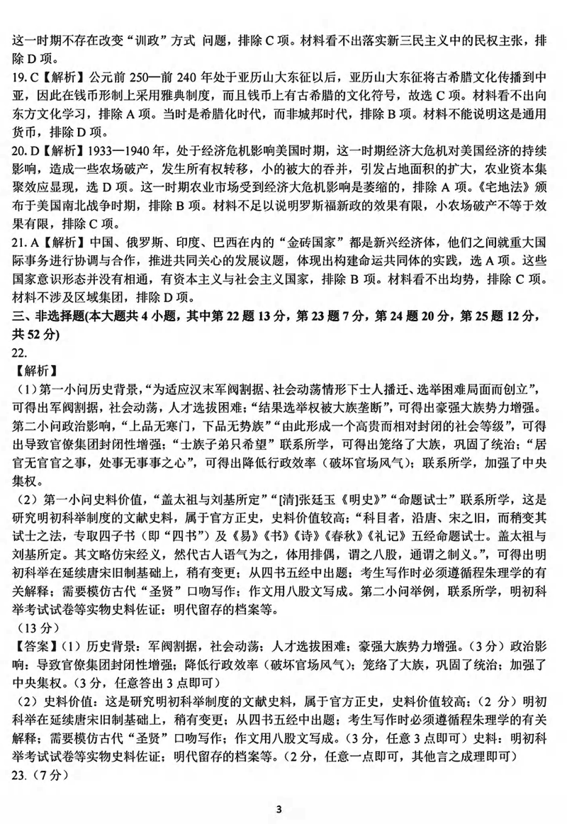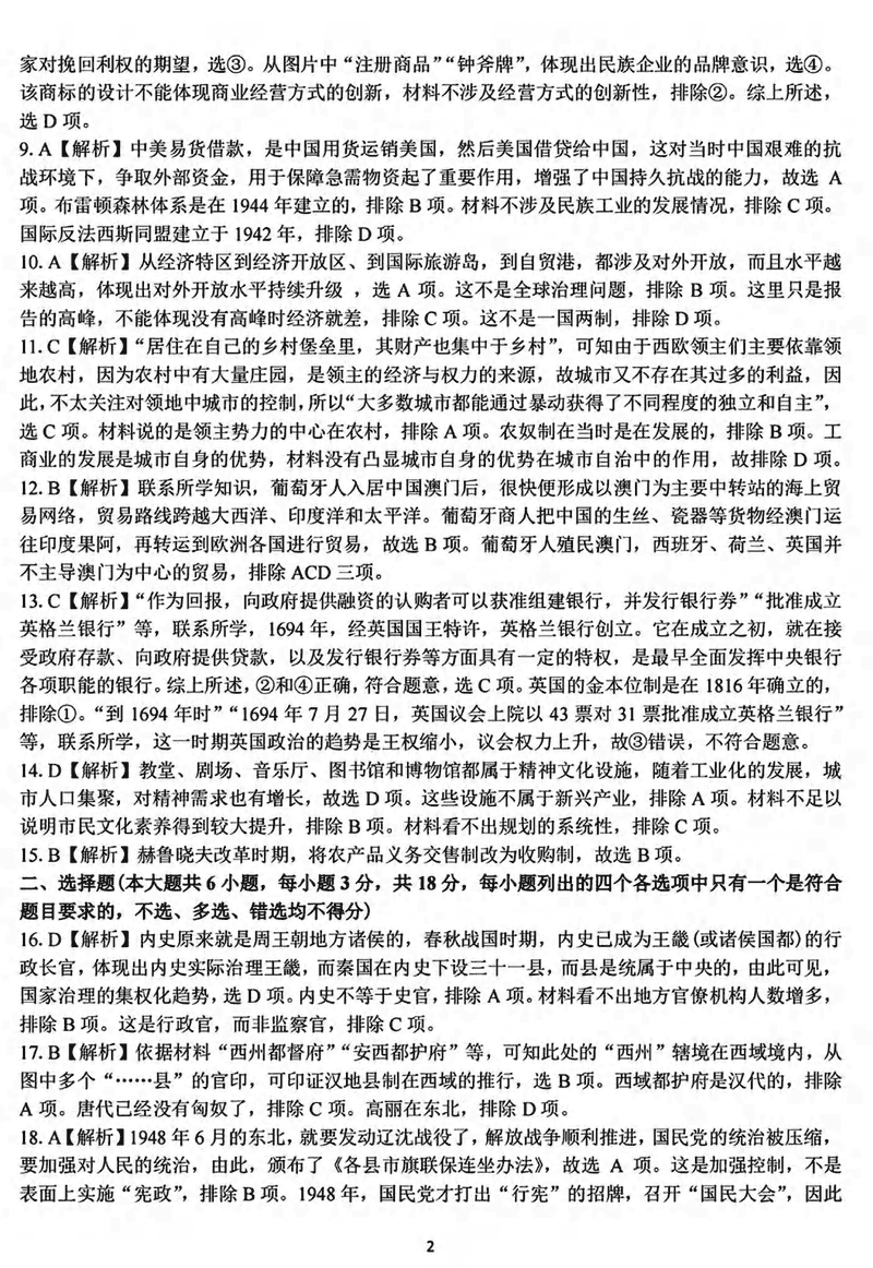 历史试题及答案解析