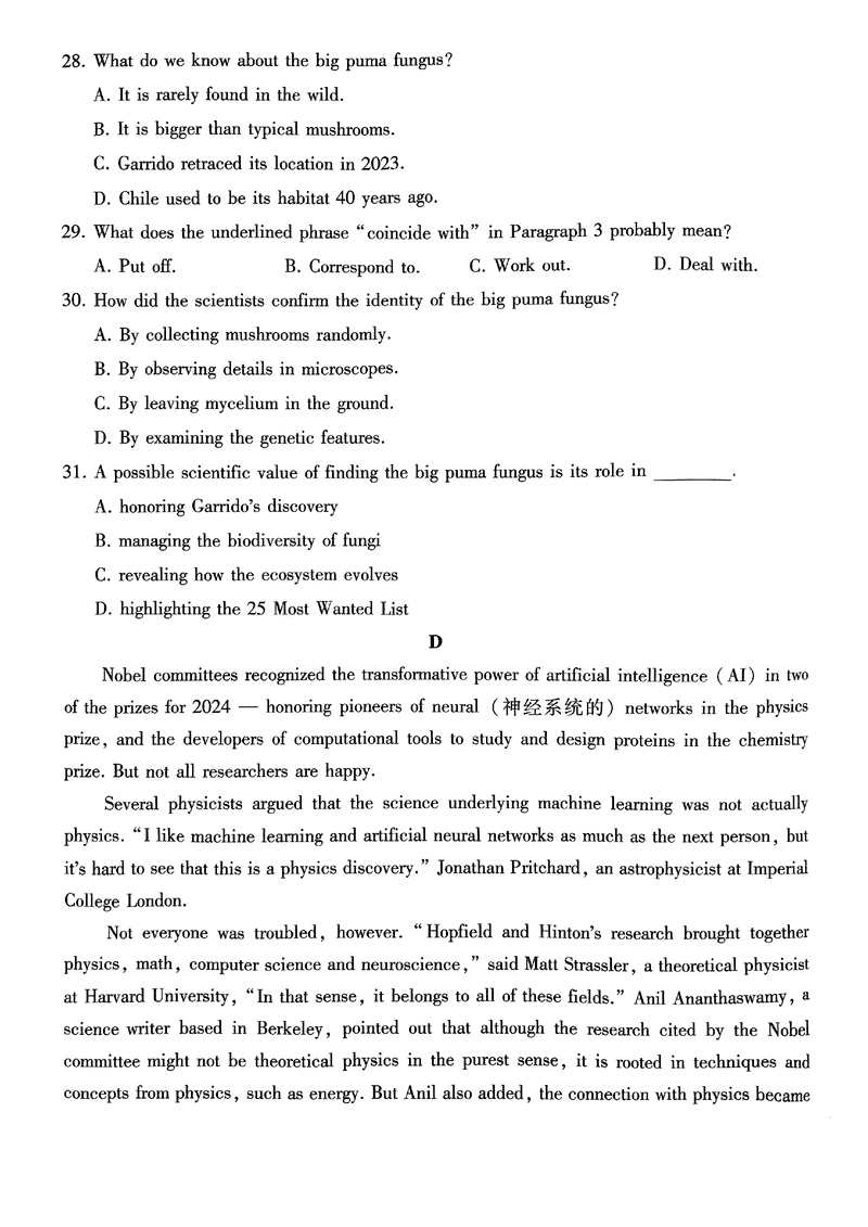 重庆巴蜀中学2025届高三12月适应性月考(四)英语考试已于近日开考,为方便考生考后及时查看考试情况,查漏补缺、弥补不足,本文整理了试题答案解析相关信息!