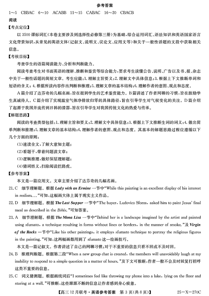 安徽省县中联盟2024-2025学年高三上12月联考英语考试已于近日开考,为方便考生考后及时查看考试情况,查漏补缺、弥补不足,本文整理了试题答案解析相关信息!
