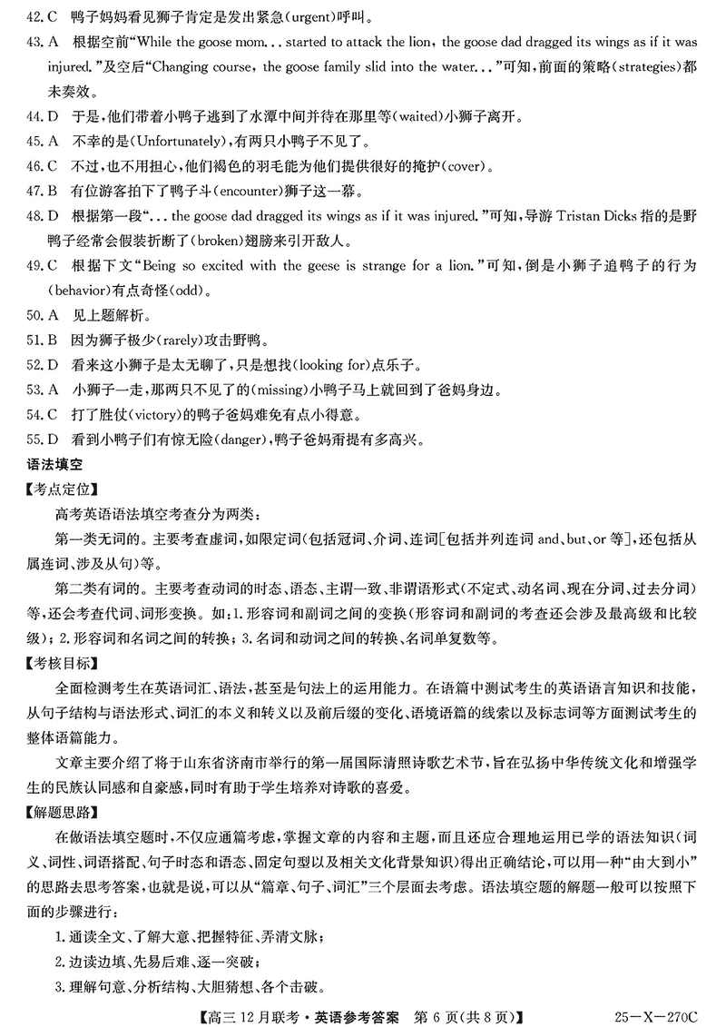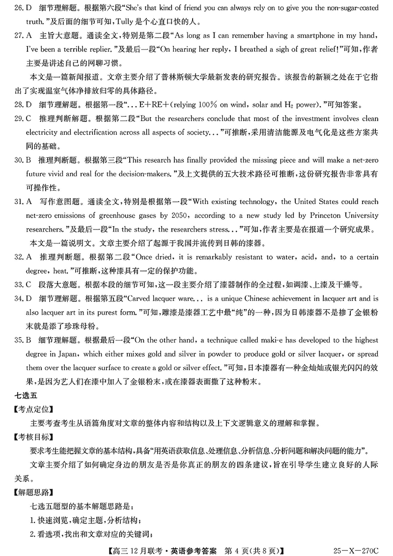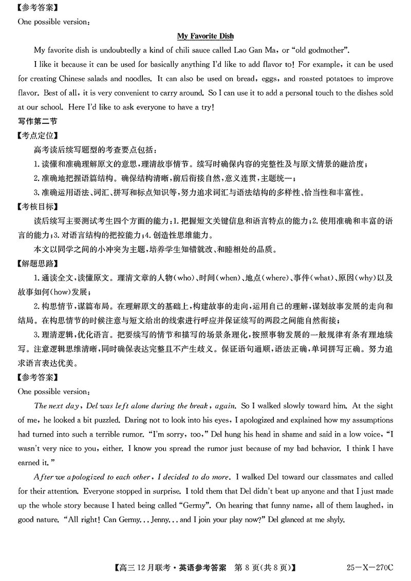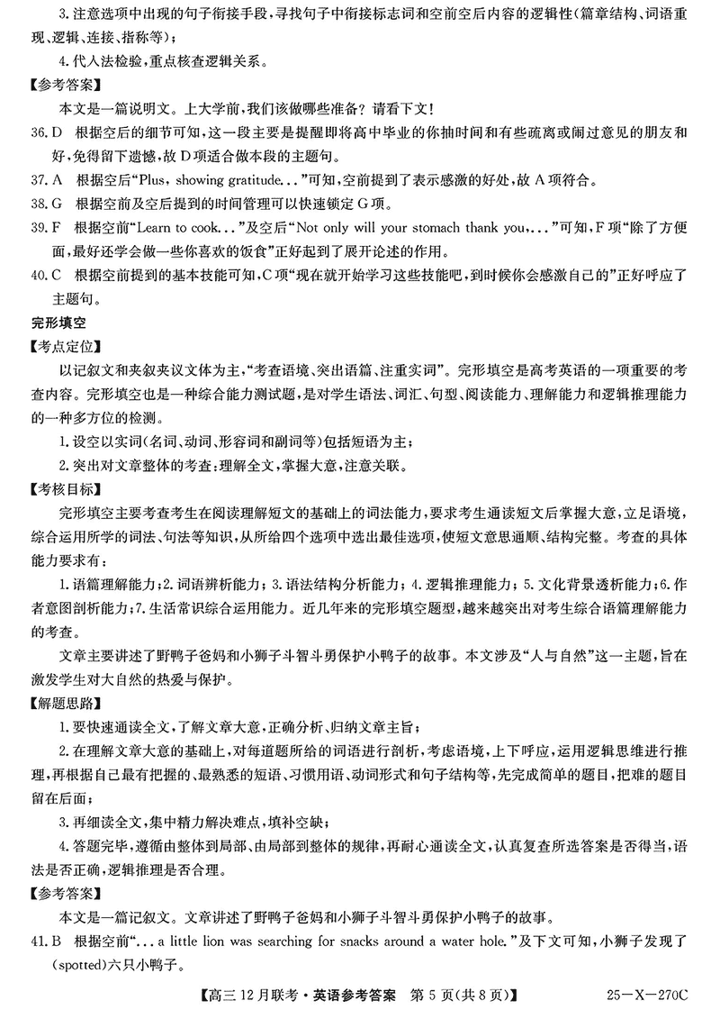 安徽省县中联盟2024-2025学年高三上12月联考英语试题及答案