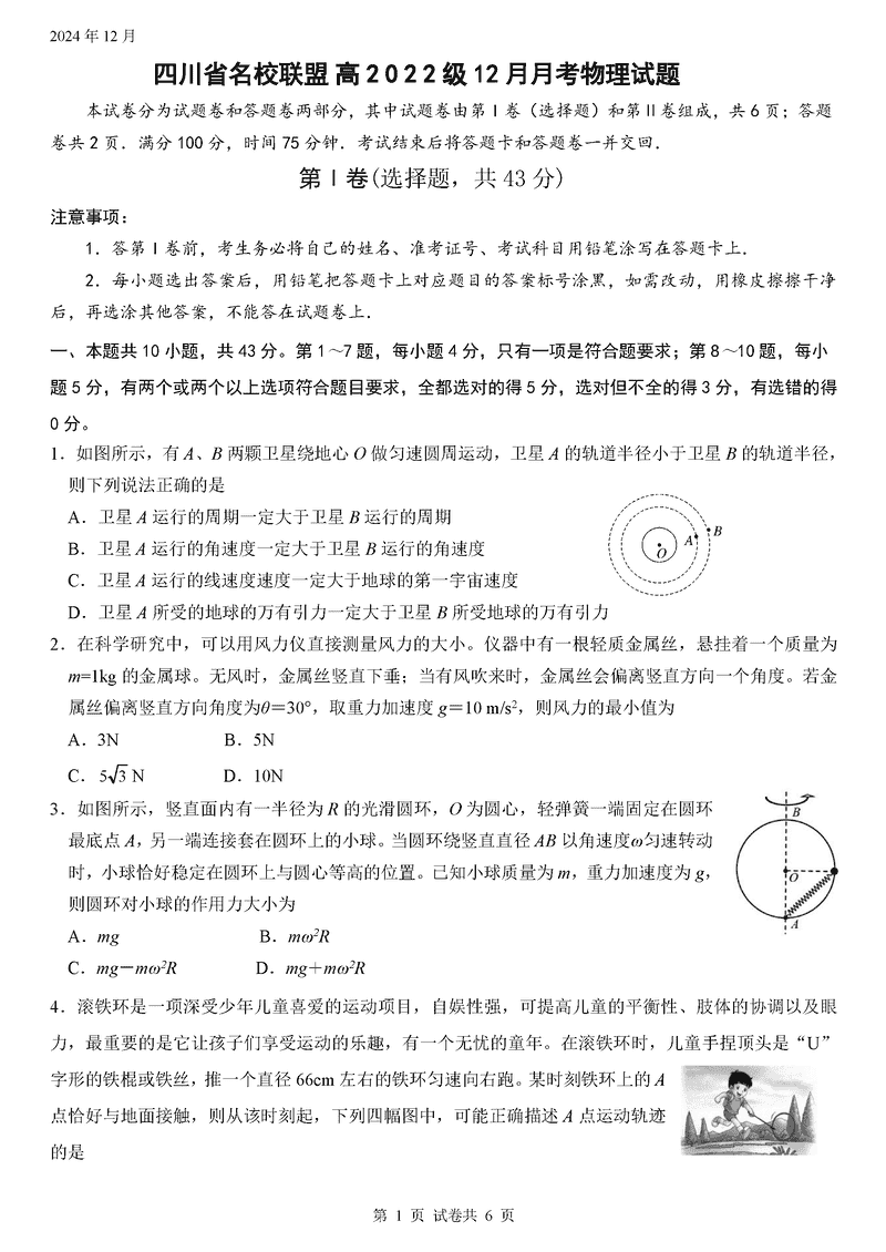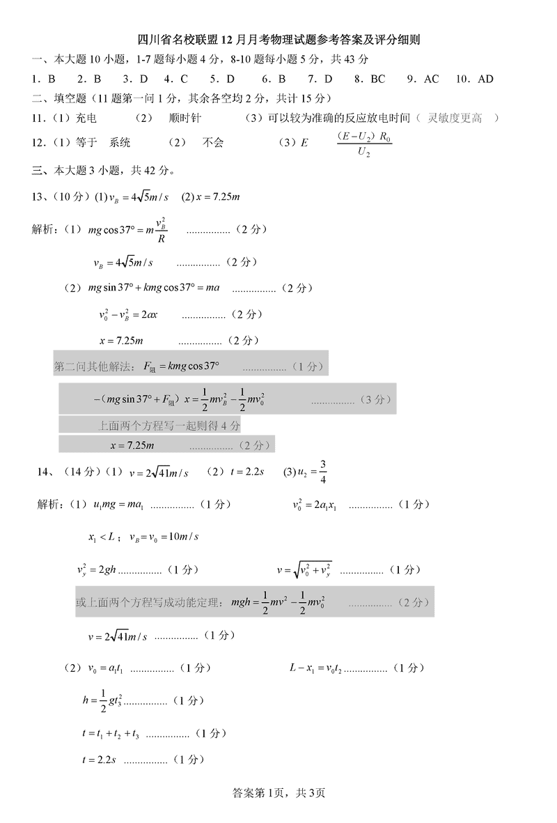 四川省名校联盟2025届高三12月联考物理试题及答案 时间:2024-12-18 11:23 四川 理综试题 四川省名校联盟2025届高三12月联考物理考试已于近日开考,为方便考生考后及时查看考试情况,查漏补缺、弥补不足,本文整理了试题答案解析相关信息! 汇总:四川省名校联盟2025届高三12月联考试题及答案汇总 物理试题及答案解析