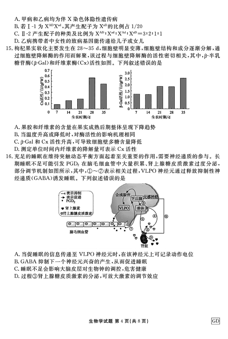 广东衡水金卷2025届高三上学期12月联考生物试题及答案
