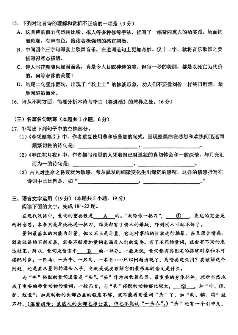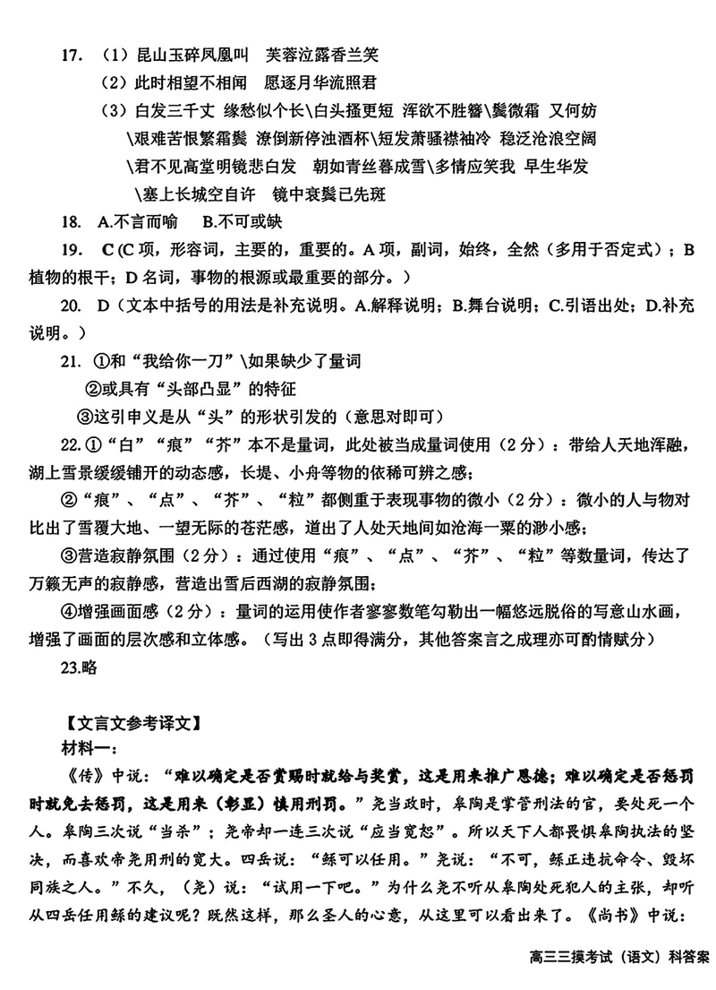 东北师大附中2025届高三上学期第三次模考语文试题及答案