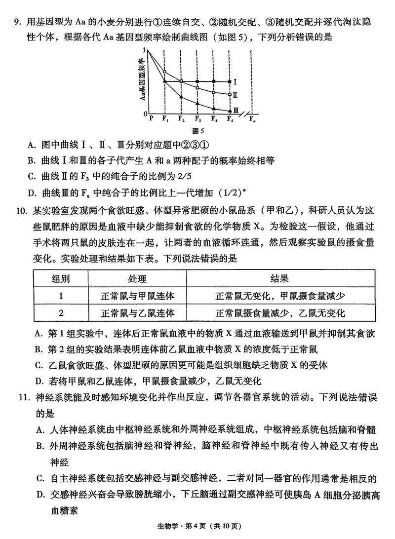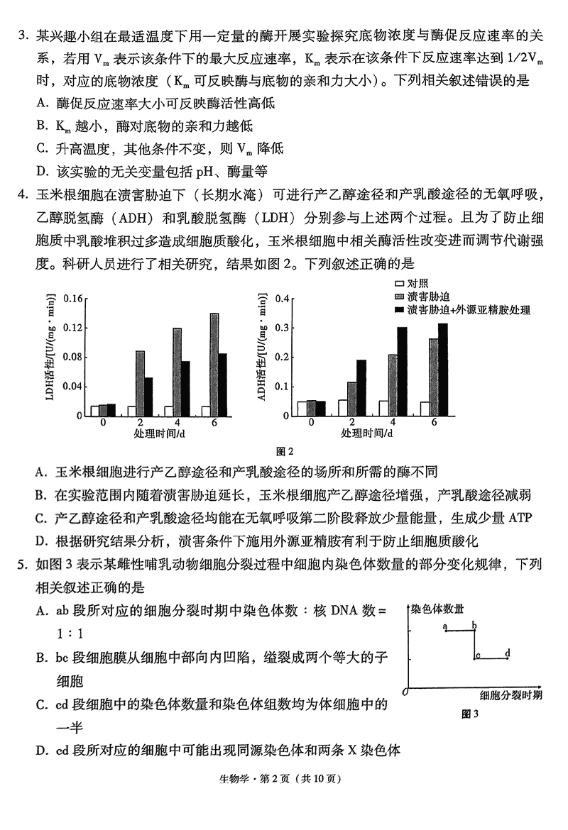 西南名校联盟2025届高三3+3+3诊断性联考(一)生物试题及答案