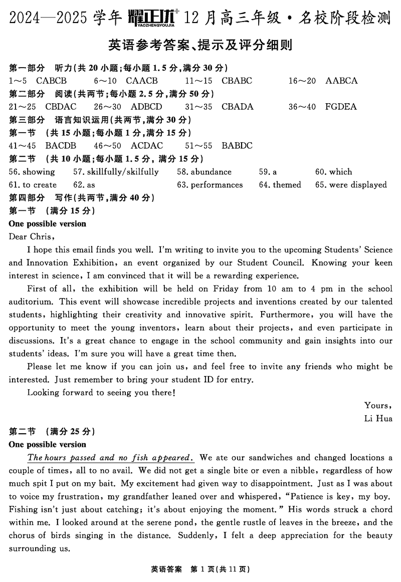 安徽2024-2025学年耀正优12月高三名校阶段检测英语试题及答案
