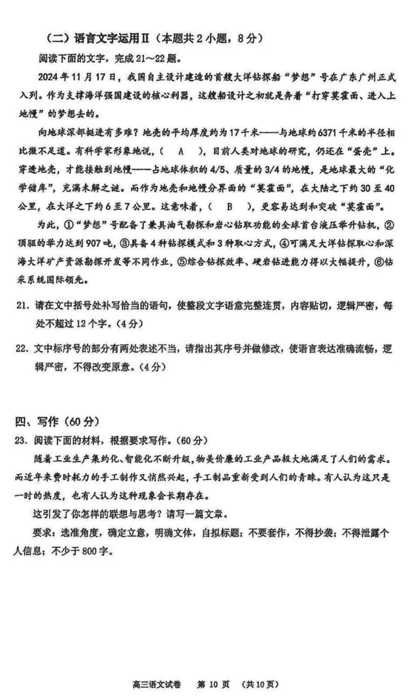 2025届广州零模高三12月调研测试语文试题及答案 时间:2024-12-24 广东 语文试题 2025届广州零模高三12月调研测试语文考试已于近日开考,为方便考生考后及时查看考试情况,查漏补缺、弥补不足,本文整理了试题答案解析相关信息! 汇总:2025届广州零模高三12月调研测试试题及答案汇总 语文试题及答案解析