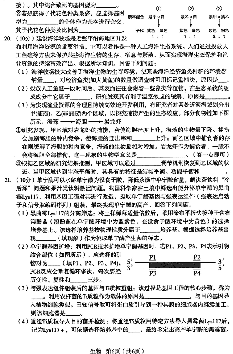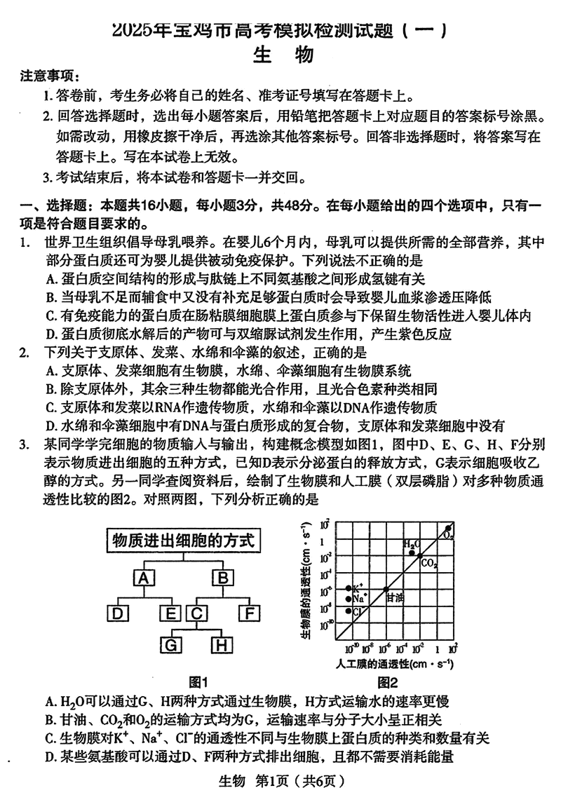 陕西宝鸡2025届高三上学期一模生物试题及答案 时间:2024-12-24 陕西 理综试题 陕西宝鸡2025届高三上学期一模生物考试已于近日开考,为方便考生考后及时查看考试情况,查漏补缺、弥补不足,本文整理了试题答案解析相关信息! 汇总:陕西宝鸡2025届高三上学期一模试题及答案汇总 生物试题及答案解析