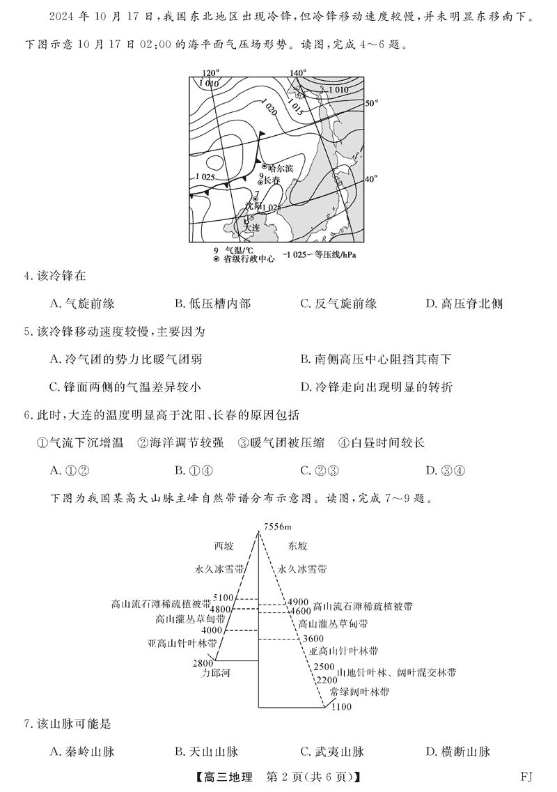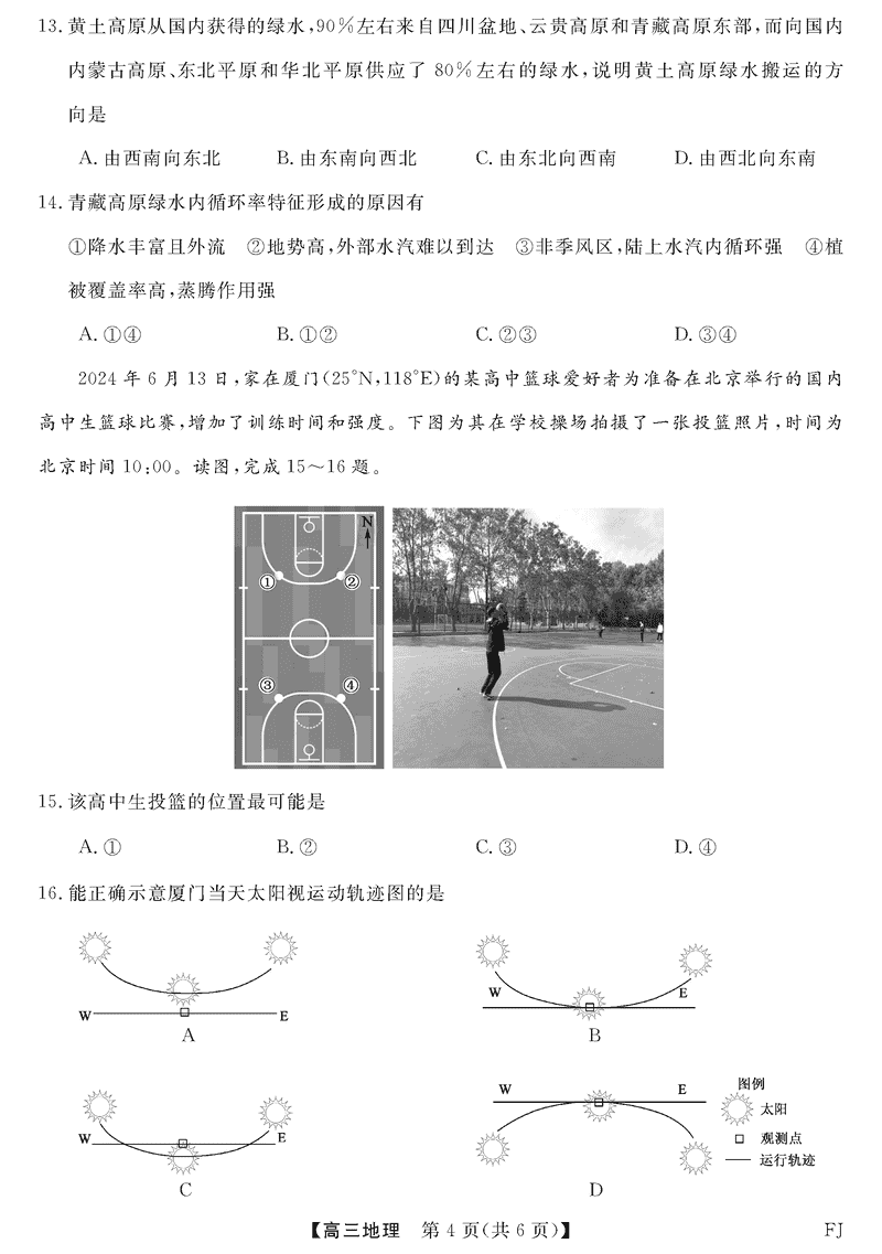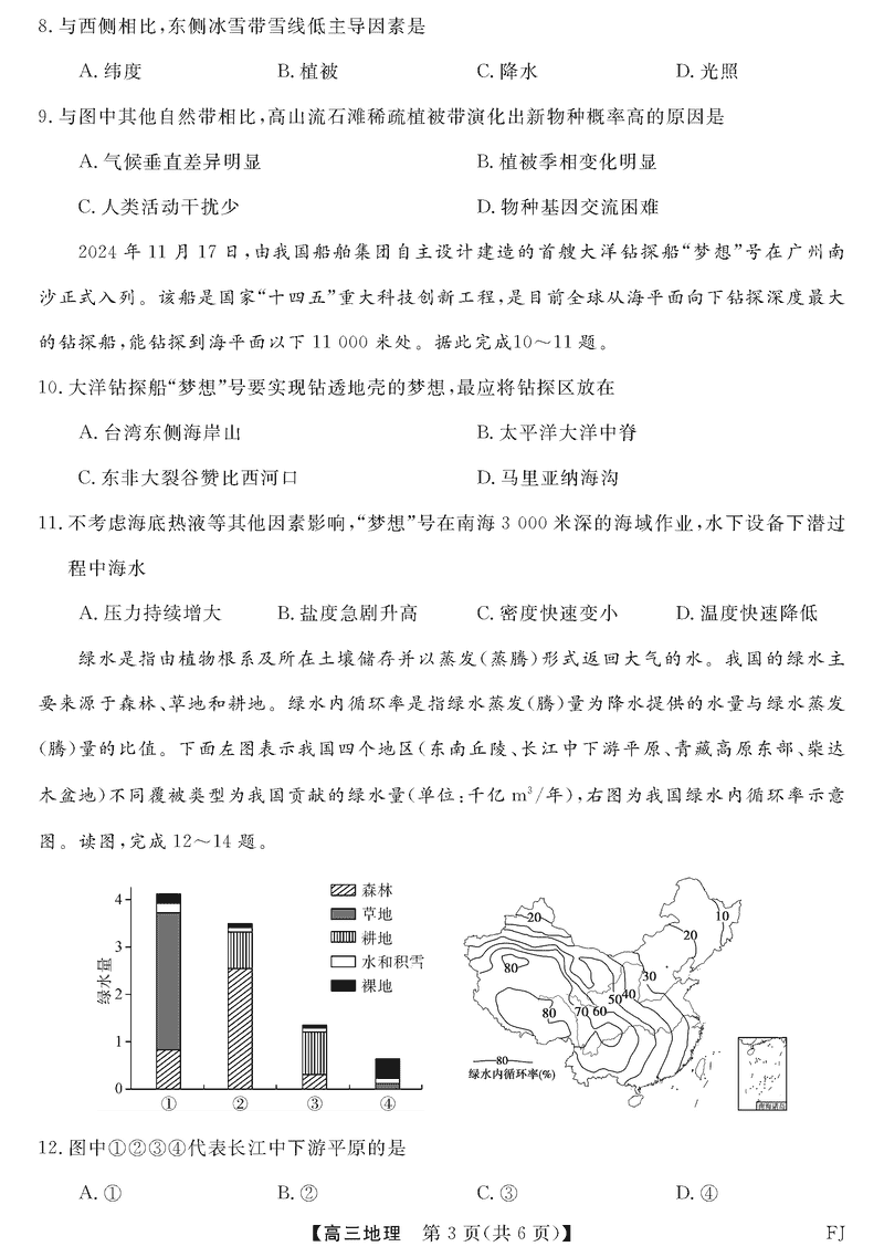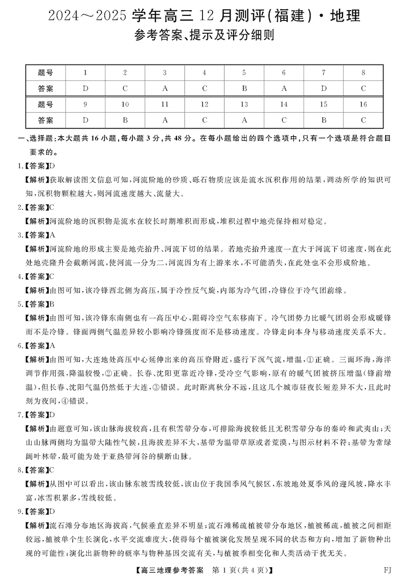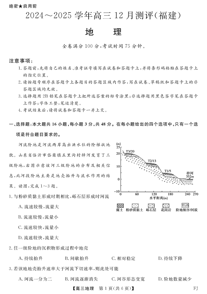 福建省金科大联考2024-2025学年高三12月测评地理试题及答案