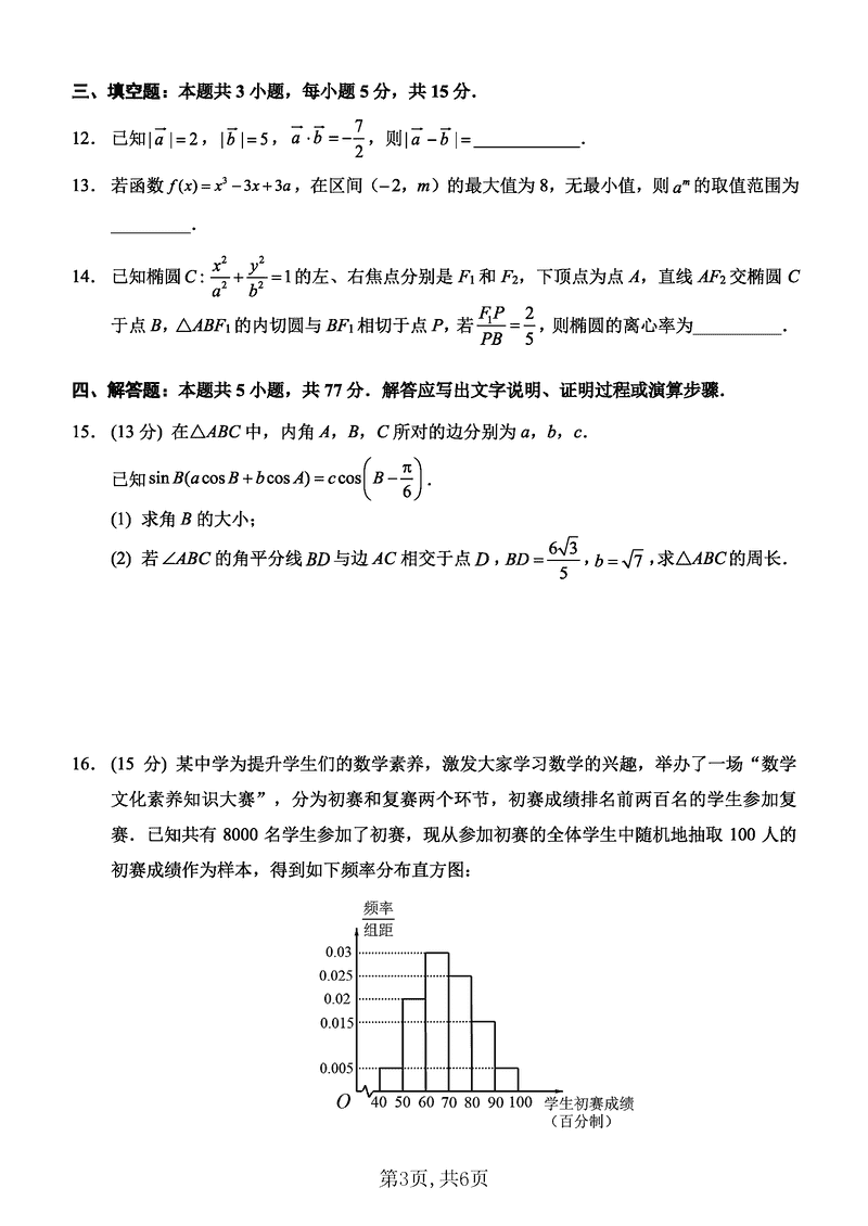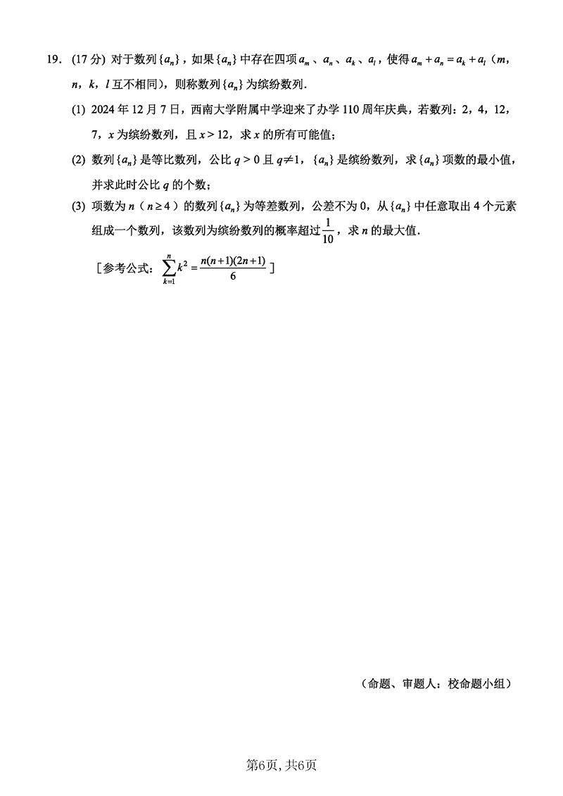 重庆西南大学附中2025届高三12月一诊模拟数学试题及答案