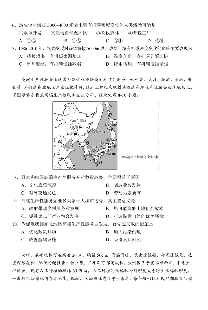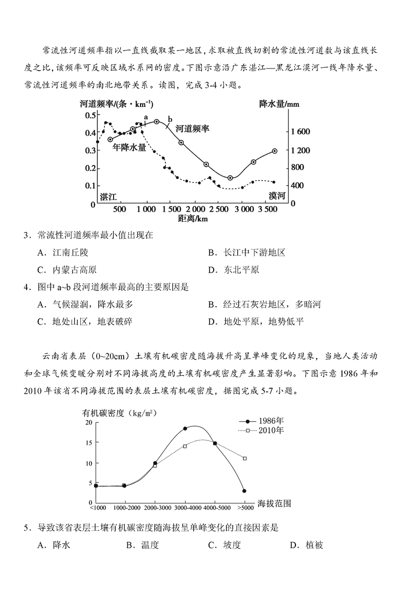 云南丽江2025届高中毕业生复习统一检测地理试题及答案