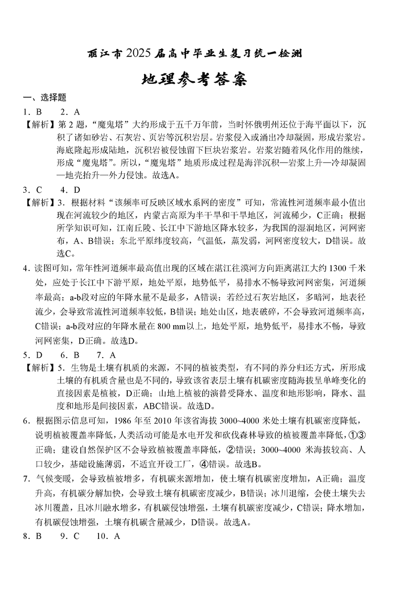 云南丽江2025届高中毕业生复习统一检测地理考试已于近日开考,为方便考生考后及时查看考试情况,查漏补缺、弥补不足,本文整理了试题答案解析相关信息!