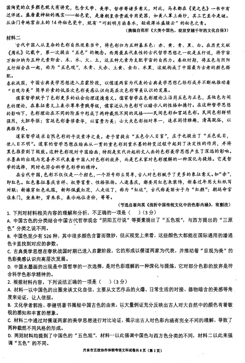 丹东五校协作体2025届高三上12月联考语文试题及答案