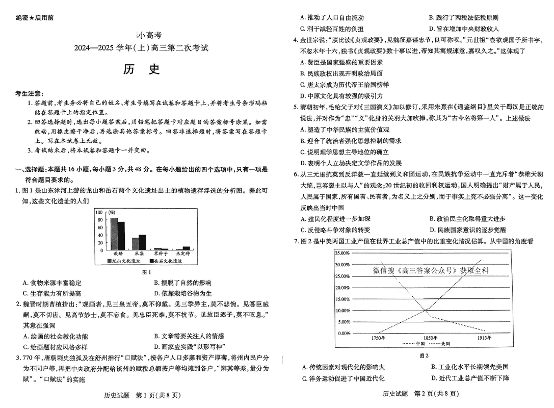 河南省天一小高考2025届高三第二次考试历史试题及答案