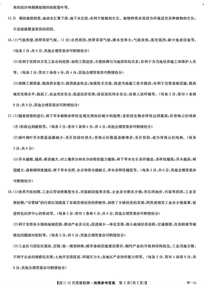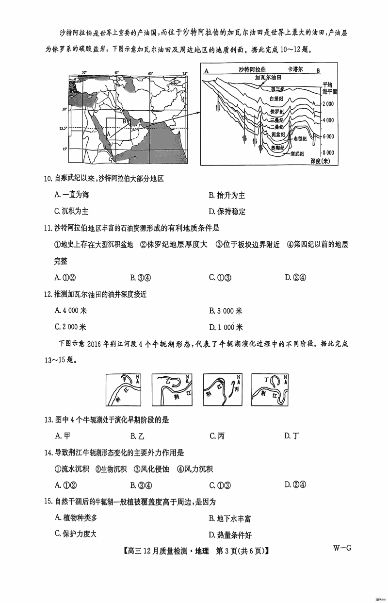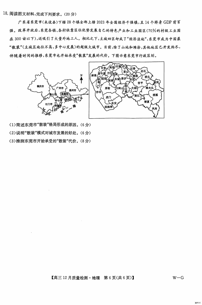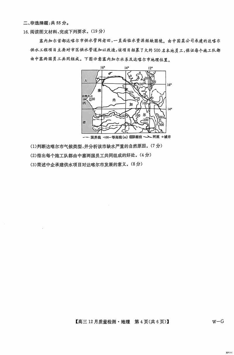 2025届九师联盟高三12月质量检测联考地理试题及答案