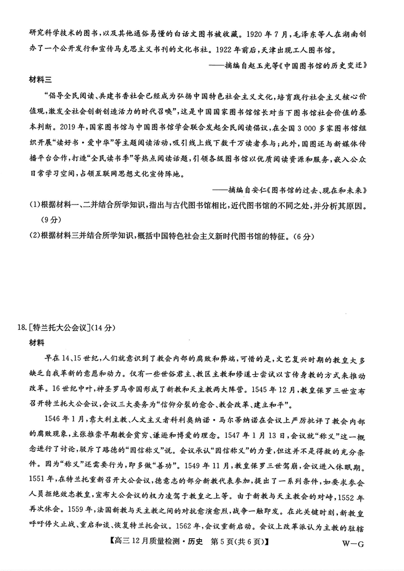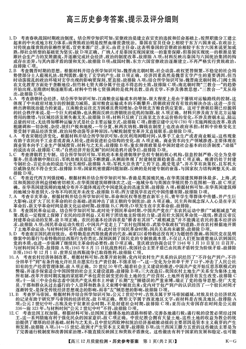 2025届九师联盟高三12月质量检测联考历史试题及答案