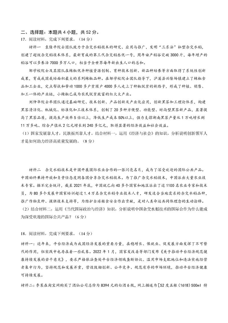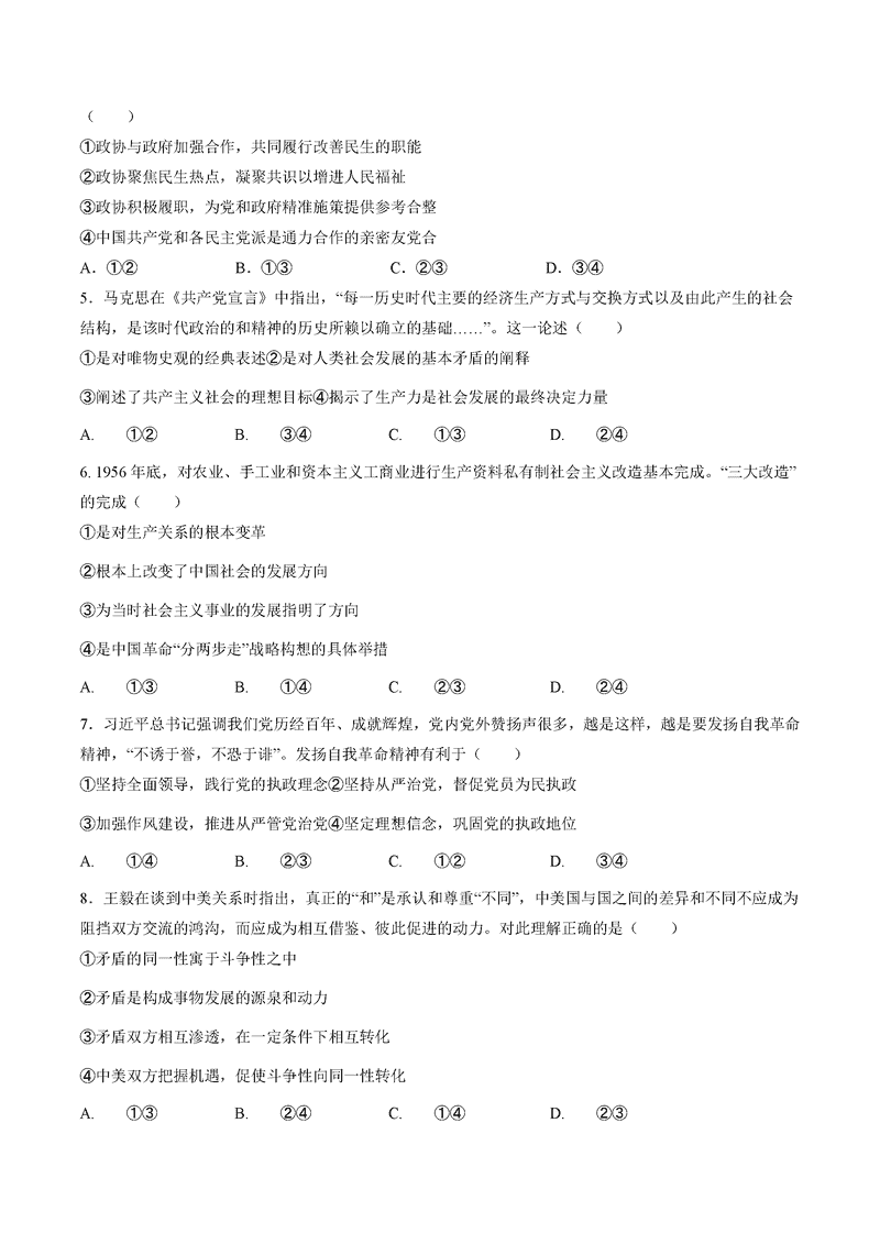 政治试题及答案解析