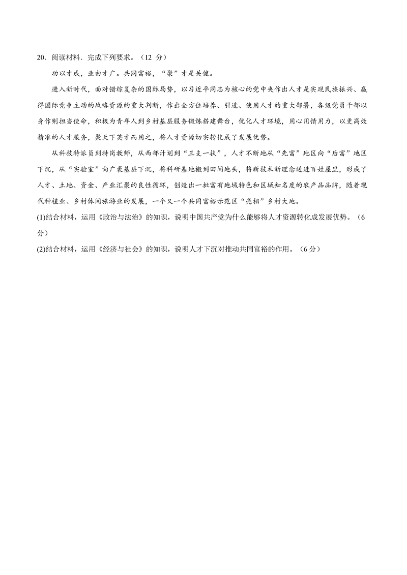 甘肃 文综试题